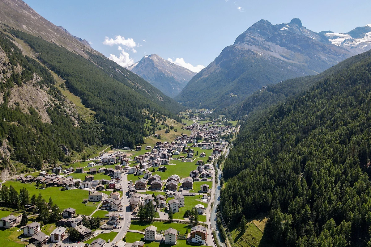 SAAS-FEE: der weltbekannte Ferienort mit seinen imposanten Gletschern liegt in einer kleinen Mulde, auf 1.800 m Höhe, und ist umgeben von 13 Viertausendern, darunter so bekannte Berge wie der Dom, Alphubel, Nadelhorn, Täschhorn und Allalin. Ganz Saas-Fee ist autofrei und kann nur zu Fuss oder mit einem Elektrotaxi besucht werden. Am Ortseingang bietet ein riesiges, mehrstöckiges Parkterminal (kostenpflichtig) ausreichend Parkmöglichkeiten.