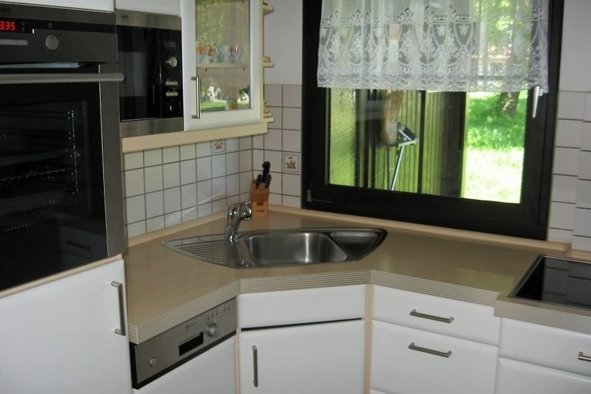 Küche: Waschmaschine, Spülmaschine, Elektroherd, Backofen, Kühlschrank mit Gefrierfach, Mikrowelle, Kaffeemaschine, Wasserkocher, Toaster