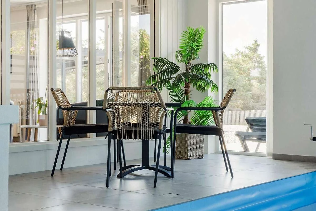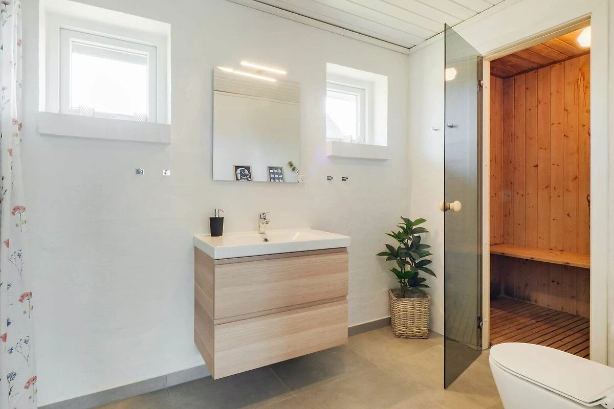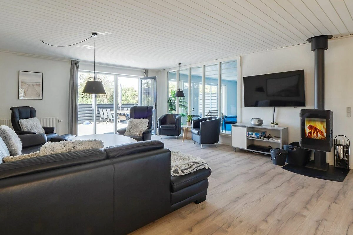 Küche(Herd(Induktion), Dunstabzugshaube, Kaffeemaschine, Mikrowelle, Spülmaschine, Kühl-/Gefrierkombination), Wohn-/Schlafzimmer(TV(Deutsch Fernsehsender, dänische Fernsehsender, norwegische Fernsehsender, schwedische Fernsehsender), Hochstuhl, Chromecast), Schlafzimmer(Doppelbett, Kinderbett), Schlafzimmer(Doppelbett), Schlafzimmer(Doppelbett), Schlafzimmer(4x Etagenbett), Badezimmer(Fußbodenheizung)(Trockner, Waschbecken, Dusche, Toilette, Waschmaschine), Badezimmer(Fußbodenheizung)(Waschbecken, Dusche, Toilette), Carport, Whirlwanne(im Innenbereich, 2 Personen), Sauna(im Innenbereich, 4 Personen), Terrasse, Gartenmöbel, Pool(im Innenbereich)