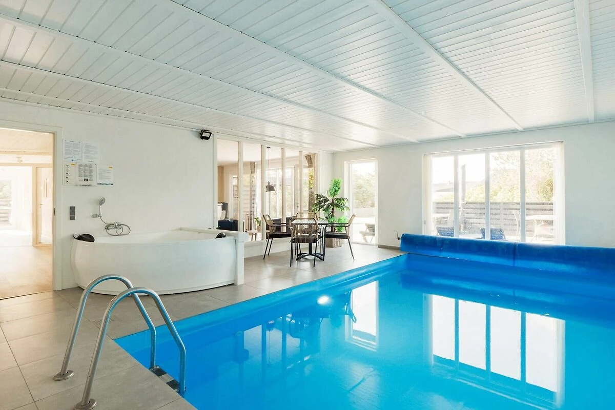Komplett renoviertes, helles und gut ausgestattetes Ferienhaus mit Swimmingpool, Whirlpool und Sauna, zentral in Vorupør gelegen, nur wenige Gehminuten vom Strand, Geschäften, Cafés und Restaurants entfernt. Das Haus wurde 2023 komplett renoviert. Der helle, moderne Poolraum verfügt über einen 20 m² großen Swimmingpool, einen Whirlpool für 2 Personen und eine Sauna für 4 Personen. Dank der hellen Möbel können Sie am Rand sitzen und die Kinder im Wasser beobachten. Die große Wohnküche ist der Mittelpunkt des Hauses und lädt zum gemütlichen Beisammensein ein. Die gut ausgestattete Küche verfügt über Induktionskochfelder, Geschirrspüler, Mikrowelle, Kaffeemaschine und Kühl-/Gefrierschrank. Durch den offenen Übergang gelangt man in einen geräumigen Essbereich mit 10 Sitzplätzen, wo Sie leckere Mahlzeiten genießen, Brettspiele spielen usw. können. Zur Ausstattung gehören außerdem ein Ecksofa und Sessel, ein Holzofen für kühle Abende und ein Fernseher mit deutschen und dänischen Sendern. Von der Wohnküche aus haben Sie einen Blick auf den Poolraum. Die Schlafbereiche verteilen sich auf vier geräumige Schlafzimmer. Drei der Schlafzimmer sind mit Doppelbetten, Nachttischlampen und einem Kleiderschrank ausgestattet. Das letzte Zimmer verfügt über vier Etagenbetten. Die unteren Betten sind 90 x 200 cm groß, die oberen sind Wandbetten mit den Maßen 80 x 200 cm. Alle Betten sind mit Boxspringmatratzen ausgestattet. Für die Kleinen stehen ein Hochstuhl und ein Kinderbett zur Verfügung. Genießen Sie Ihren Aufenthalt auch im Freien auf mehreren Terrassen. Vor dem Haus befindet sich eine große, nach Süden ausgerichtete Terrasse mit Platz zum gemeinsamen Essen und geselligen Beisammensein. Hier stehen vier Sonnenliegen zur Verfügung. An einer Seite des Hauses befindet sich eine kleinere Terrasse mit Gartenmöbeln. Vom Wohnzimmer aus haben Sie direkten Zugang zur großen Terrasse.Wenige Gehminuten vom Haus entfernt (ca. 150 m) befindet sich eine Clever-Ladestation, an der Sie Ihr Elektroauto aufladen können.Nicht für Jugendgruppen oder Bauarbeiter mietbar.Kurz vor Ihrem Ankunftsdatum kann eine rückzahlbare Kaution erhoben werden. Die Kaution stellt sicher, dass Ihr Aufenthalt reibungslos verläuft, und deckt eventuelle Zusatzleistungen oder Verbrauchskosten ab.Diese Kaution deckt den Verbrauch von Nebenkosten während Ihres Aufenthalts sowie zusätzliche in Anspruch genommene Leistungen ab.Der endgültige Betrag wird anhand der tatsächlichen Zählerstände und Nutzung zusätzlicher Services angepasst. Ein etwaiger Restbetrag wird Ihnen innerhalb von 21 Tagen nach dem Check-out zurückerstattet.Die Kaution dient lediglich als Vorauszahlung für Leistungen, die Sie ohnehin bezahlen würden, und ermöglicht einen reibungslosen Ablauf Ihres Aufenthalts und Check-outs.