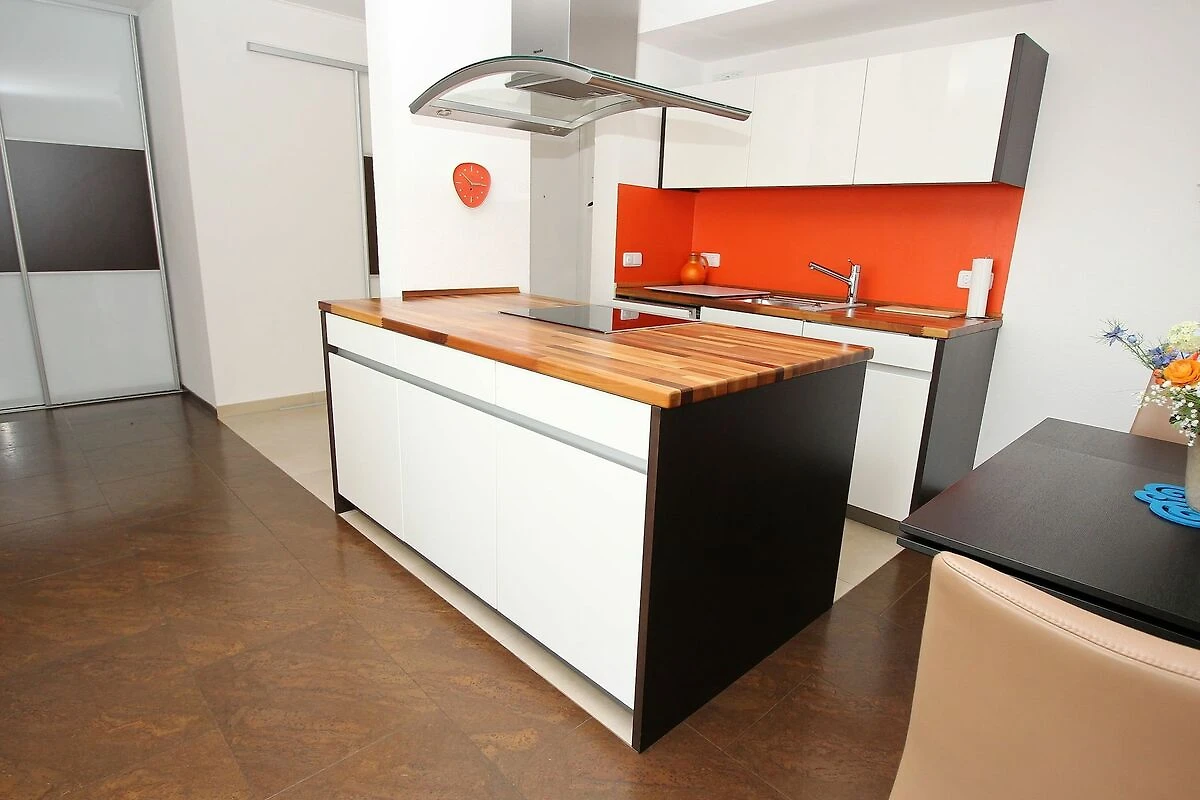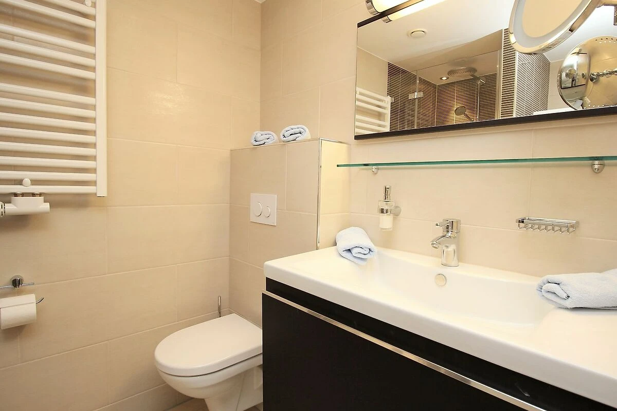 Balkon, Markisen, Küche, Geschirrspüler, Mikrowelle, Duschbad/WC, Fön, Waschmaschine mit Trockner, TV, DVD, Stereoradio mit CD, kostenl. W-Lan, Aufzug, inkl. Tiefgaragenstellplatz (Einfahrtshöhe: 1,85 m).