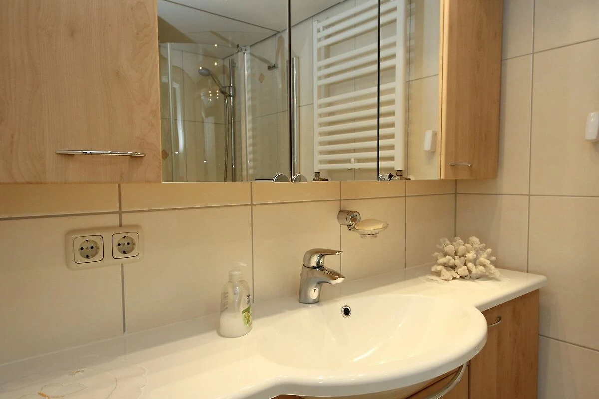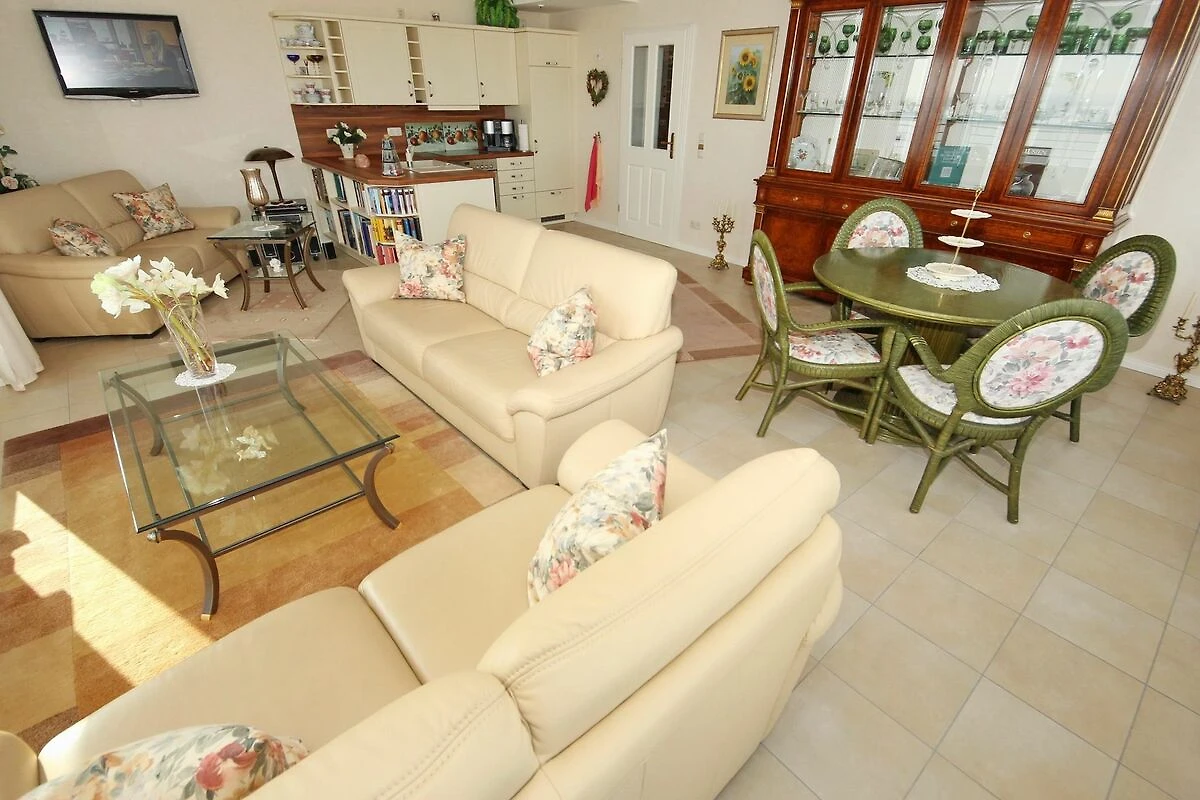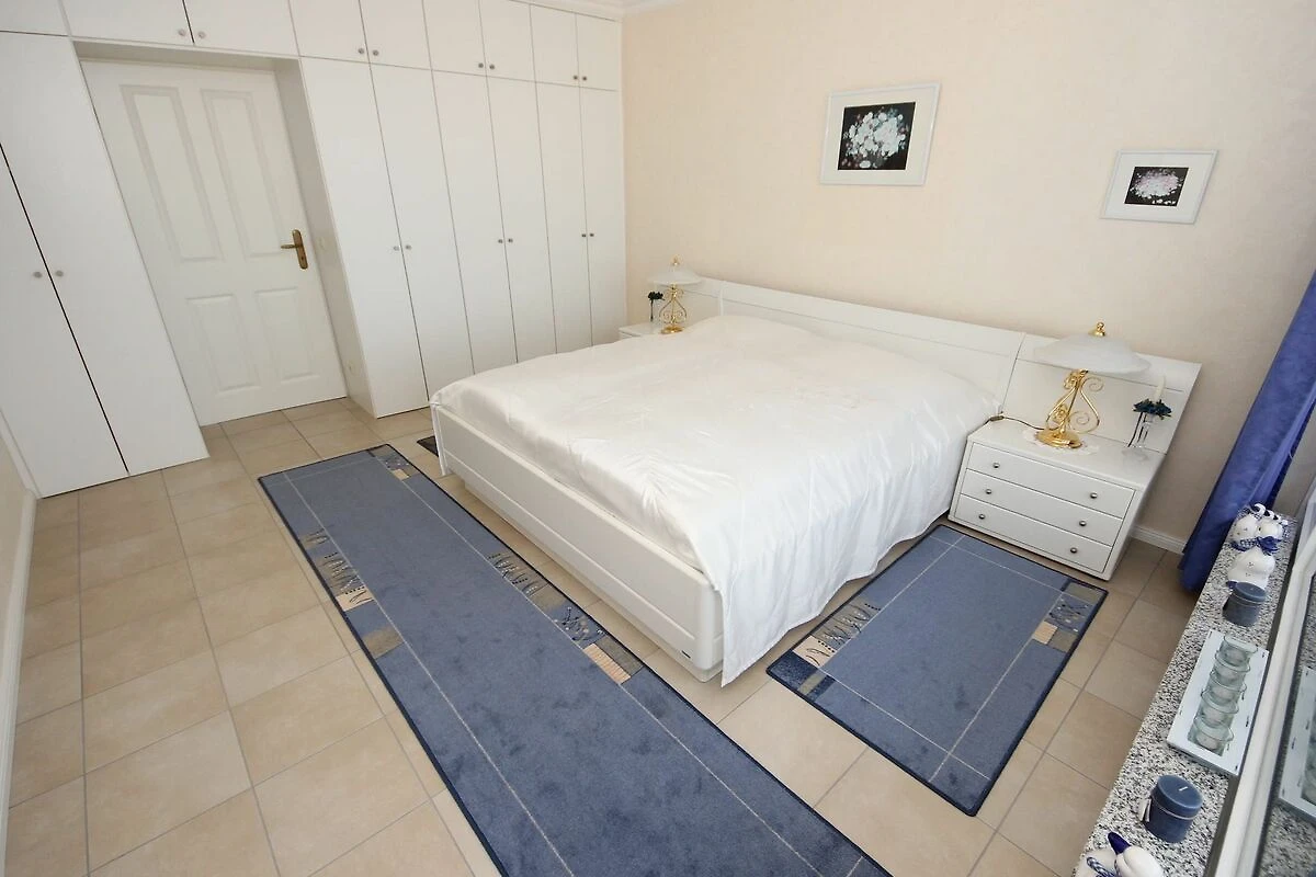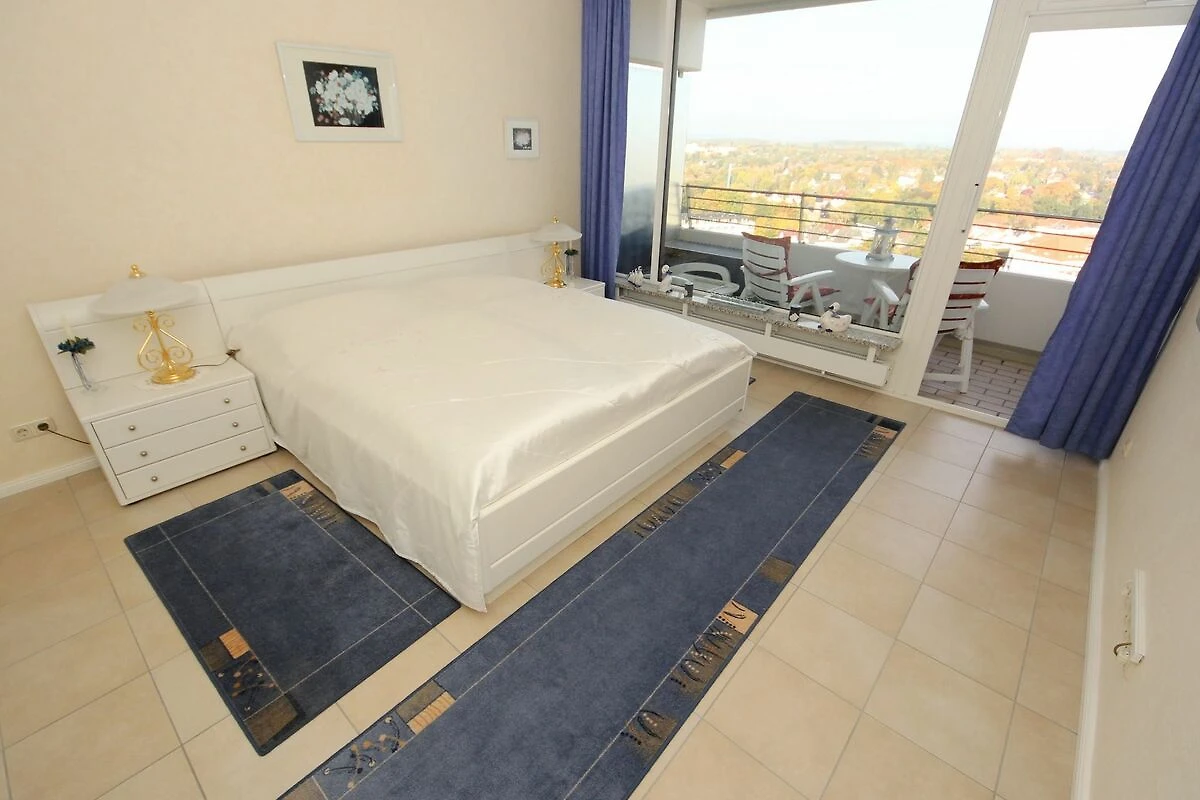 Dieses elegante 2-Zimmer-Appartement hat eine exklusive Ausstattung, die allen Ansprüchen entspricht und sofort zum Wohlfühlen einlädt. Der grosszügige, helle Wohnraum hat eine moderne, offene Einbauküche. Die weitere Einrichtung besteht aus einer schönen, dreiteiligen Couchgarnitur mit Tischen, einer Essecke direkt am Fenster und einem antiken Glasvitrinenschrank. Im Schlafzimmer befinden sich ein grosses, bequemes Doppelbett (2x 90 cm x 200 cm) und ein geräumiger Einbaukleiderschrank. Das moderne Duschbad erreichen Sie vom Flur. Beide Wohnräume sind hell und freundlich und haben einen Zugang zum grossen Eckbalkon. Hier geniessen Sie einen uneingeschränkten Panoramablick direkt auf die Ostsee und zur Lübecker Bucht mit lebhaftem Schiffsverkehr.