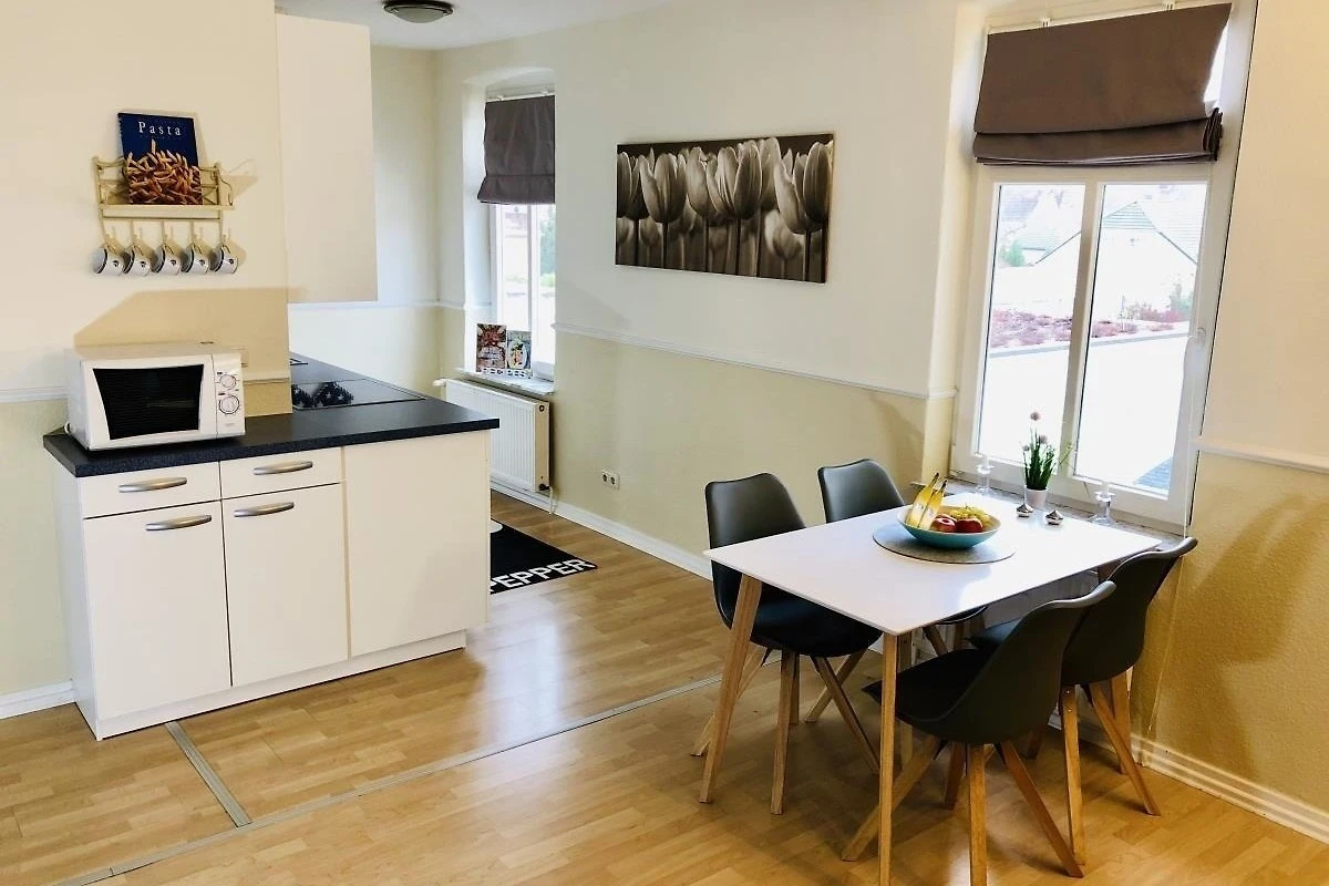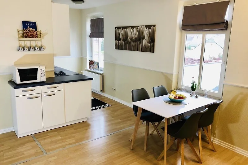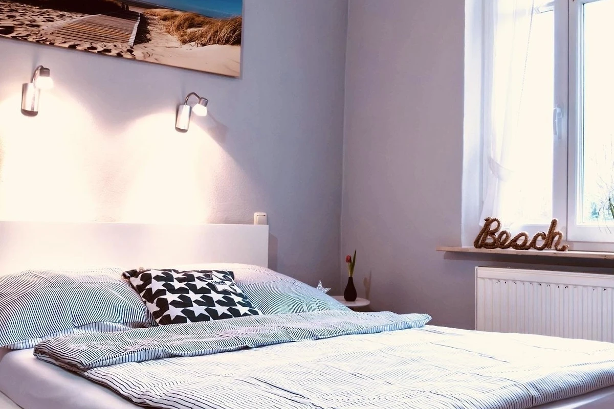 Im 1. Obergeschoss der charmanten Villa Baltica bietet diese neugestaltete Ferienwohnung in unmittelbarer Strandnähe (50m) Platz für 4 Gäste. Der Wohnbereich mit offener, vollausgestatteter Küche (u.a. mit Ceranfeld, Geschirrspüler, Toaster, Kühlschrank und Mikrowelle) bietet sowohl Platz für einen Esstisch mit Stühlen als auch für ein bequemes 3er Sofa. Die zwei getrennten Schlafzimmer mit jeweils einem Doppelbett und geräumigen Kleiderschränken lassen sowohl Familien als auch Pärchen entspannt Urlauben. Für schlechtes Wetter befinden sich im Wohnbereich ein Flachbild TV, Hifi Anlage mit DVD Funktion, eine Auswahl an Büchern und Gesellschaftsspielen. Zur Wohnung gehören auch noch eine Gemeinschaftswaschküche mit Waschmaschine und Trockner, sowie ein Gartenhaus zur gemeinschaftlichen Nutzung.