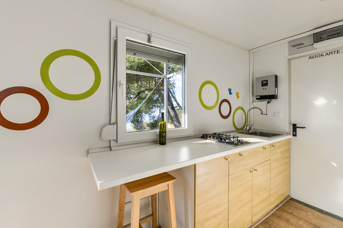 Ein Stockbett bietet Platz für bis zu drei Personen, Ihnen steht eine Küche sowie ein Bad mit WC und Dusche zur Verfügung. Von der grossen Terrasse sind es nur wenige Schritt bis ins Meer.