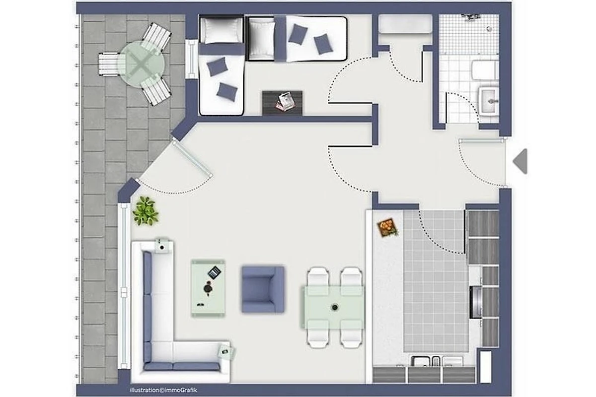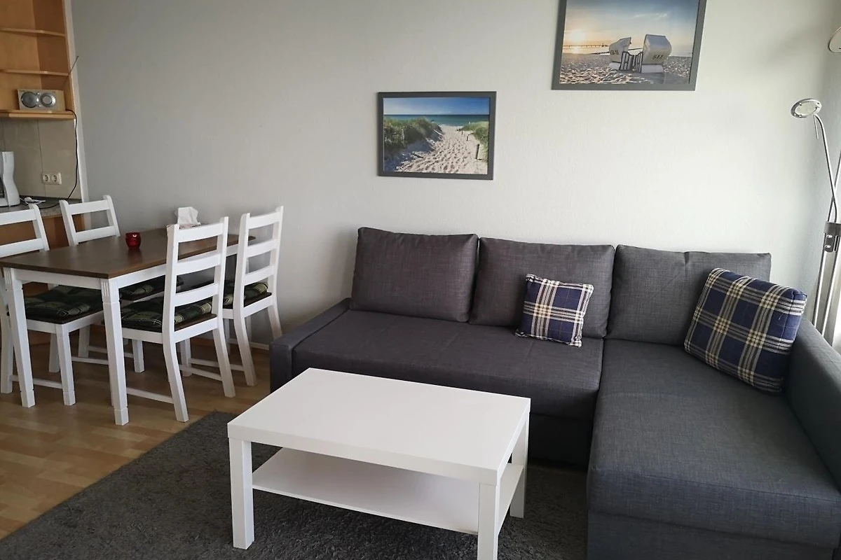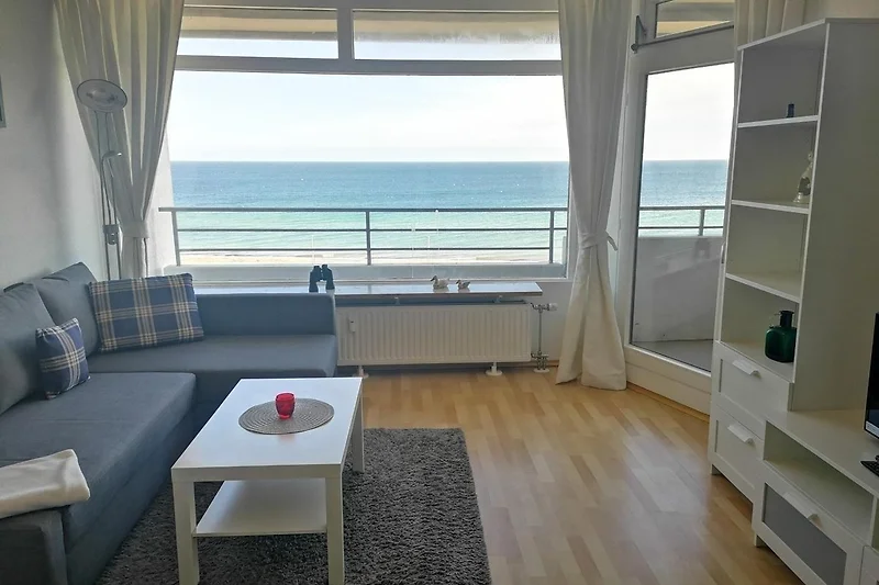 Die Wohnung 69 befindet sich in der 6. Etage und hat herrlichen Seeblick. Das Wohnzimmer hat eine gemütliche Sitzecke, welche man zu einer Schlafmöglichkeit wandeln kann, Essecke und natürlich einen Balkon. Im Schlafzimmer befindet sich zwei Einzelbetten. Die Küche ist ausgestattet mit Geschirrspüler etc. und ist offen zum Essbereich im Wohnzimmer.
