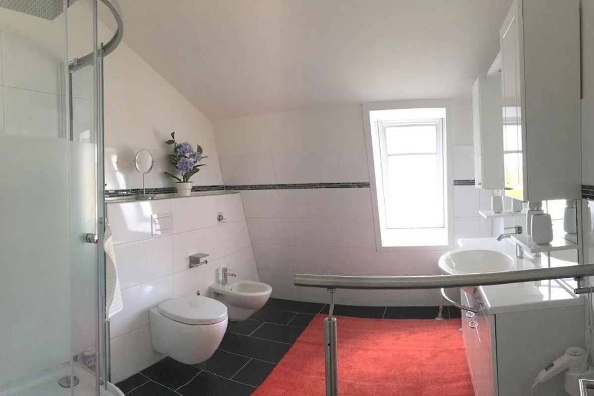 Die moderne Küchenzeile verfügt über Backofen, Geschirrspüler, Mikrowelle und Kaffeevollautomat. Es stehen Ihnen 2 Schlafzimmer mit Doppelbett und eins davon hat einen gr. Flachbild-TV zur Verfügung. Selbstverständlich sind diese Zimmer auch verdunkelbar. Das grosse Badezimmer mit Fenster hat eine Dusche, WC und ein Bidet.