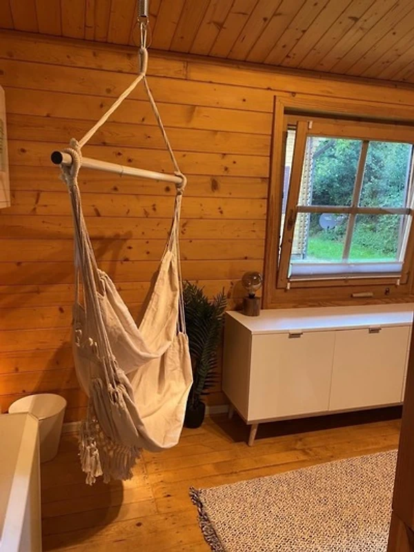 Der Holzbungalow liegt auf einem schönen Reiterhof, abseits der Hofanlage mit Blick auf die Wiesen. Er besteht aus einem gemütlichen Wohnzimmer mit Sitzecke ( Schlafsofa ) und einem Essbereich für 4 Personen. Von dem Wohnzimmer aus geht eine steile Treppe unter das Dach, wo sich das Doppelbett befindet. Das Kinderzimmer verfügt über ein Etagenbett. An das Wohnzimmer grenzt die Küche mit Backofen und Ceranfeld und das Bad mit Dusche und WC. Der Bungalow hat in jedem Raum Fenster und ist hell und freundlich. Die Abendsonne können Sie auf der Terrasse geniessen.