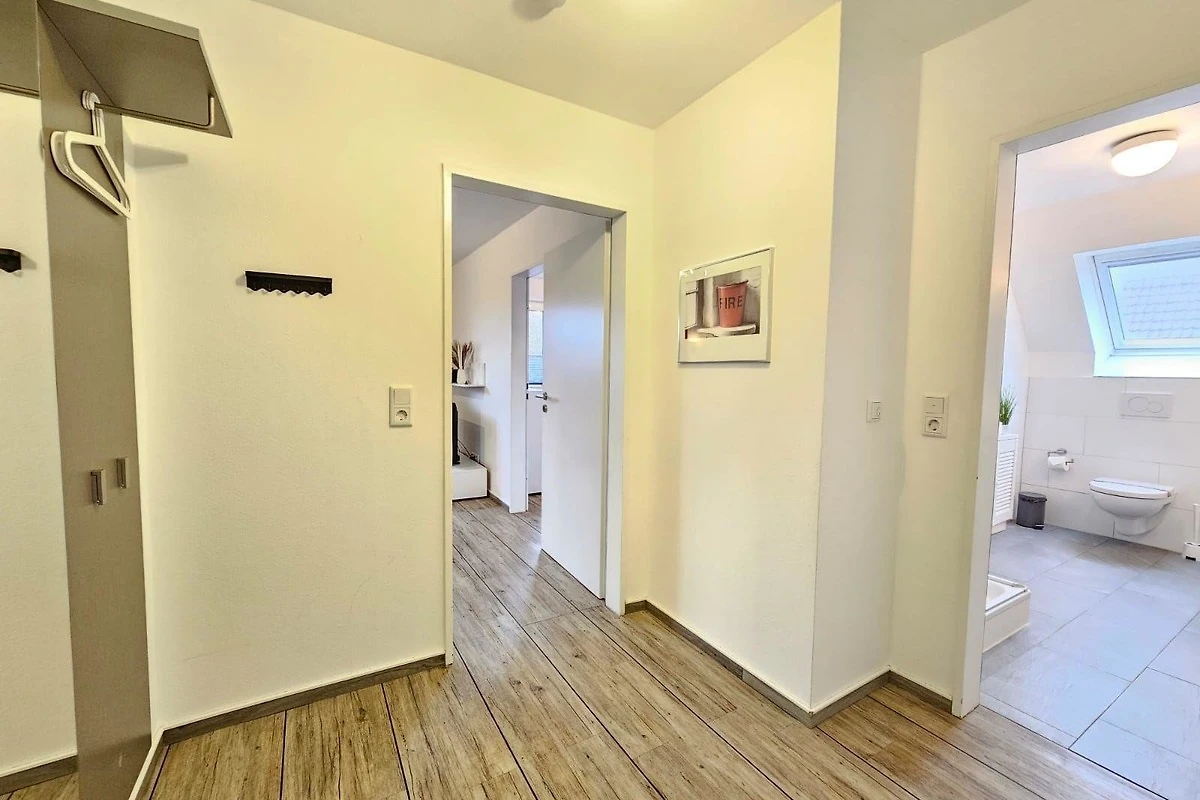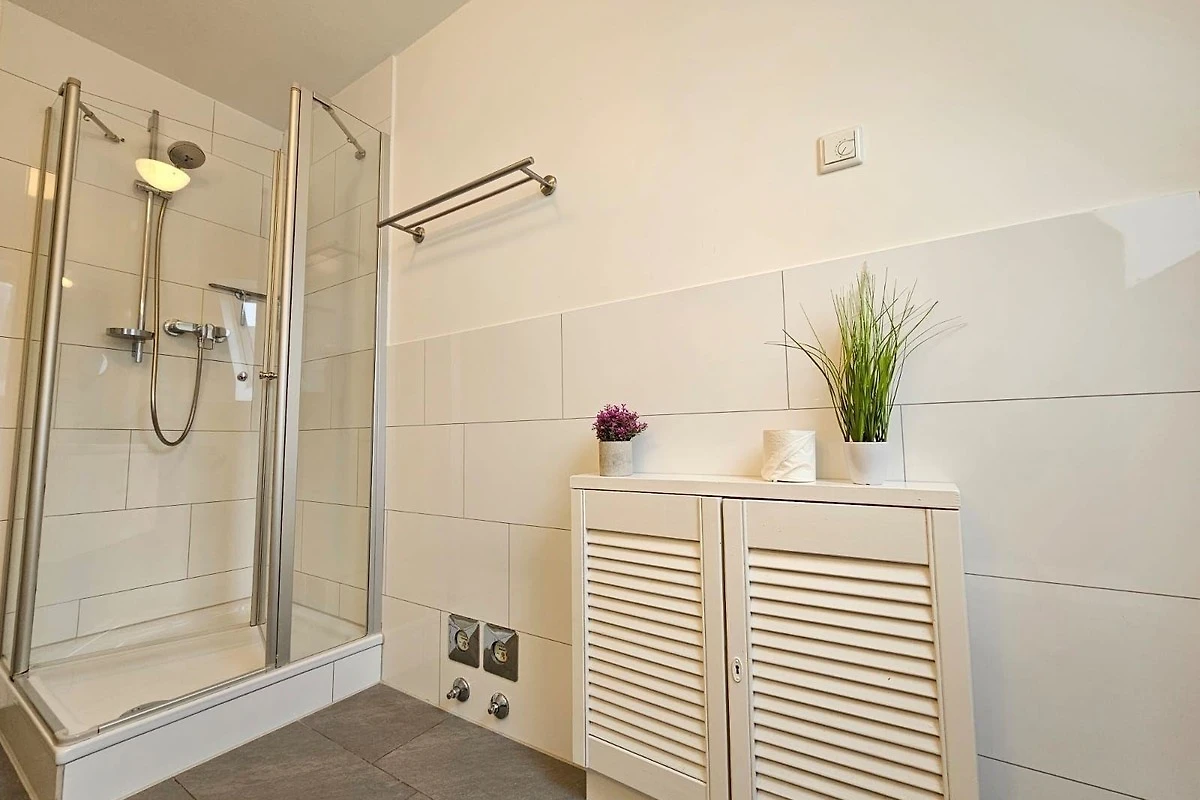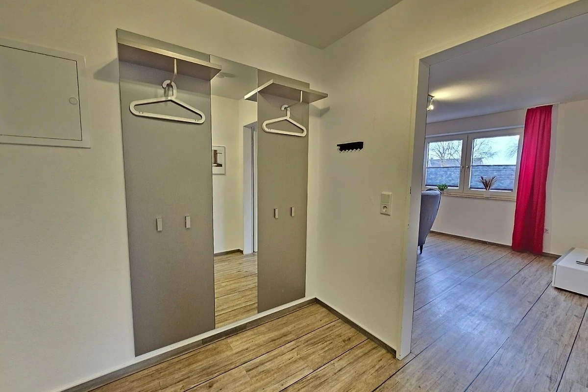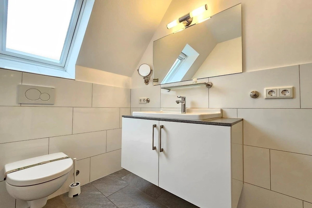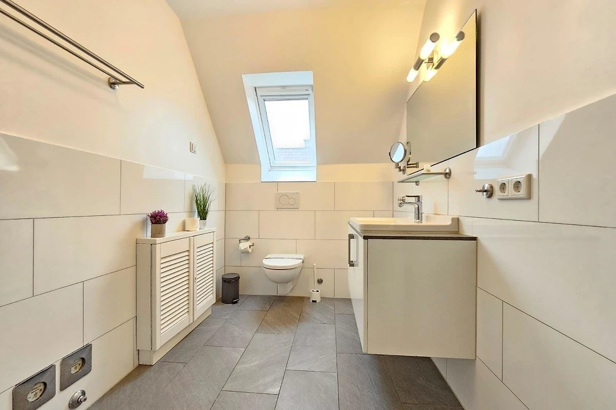 Die Ferienwohnung Famke im Mienhus in Norddeich bietet eine einladende, familienfreundliche Ausstattung in einer komfortablen Umgebung. Das Elternschlafzimmer verfügt über ein Doppelbett und Rollläden, während das Kinderzimmer mit einem Kojenbett und einem Klappbett Platz für bis zu drei Kinder bietet. Der helle Wohnbereich ist mit einer voll ausgestatteten Küchenzeile, einschliesslich Ceranfeld, Backofen und Kühlschrank, ideal für die Selbstversorgung. Das Badezimmer überzeugt mit natürlichem Licht durch ein Fenster. Zur Ausstattung gehören zudem SAT-TV-Anschlüsse und zusätzliche Fernseher in den Schlafzimmern. Die Wohnung ist geeignet für bis zu fünf Erwachsene. Gemeinschaftliche Einrichtungen wie eine Waschmaschine und ein Wäschetrockner sind gegen Gebühr verfügbar. Bettwäsche und Handtücher können optional hinzugebucht werden. Die freundliche und gemütliche Atmosphäre lädt zu entspannten Urlaubstagen an der Nordsee ein.