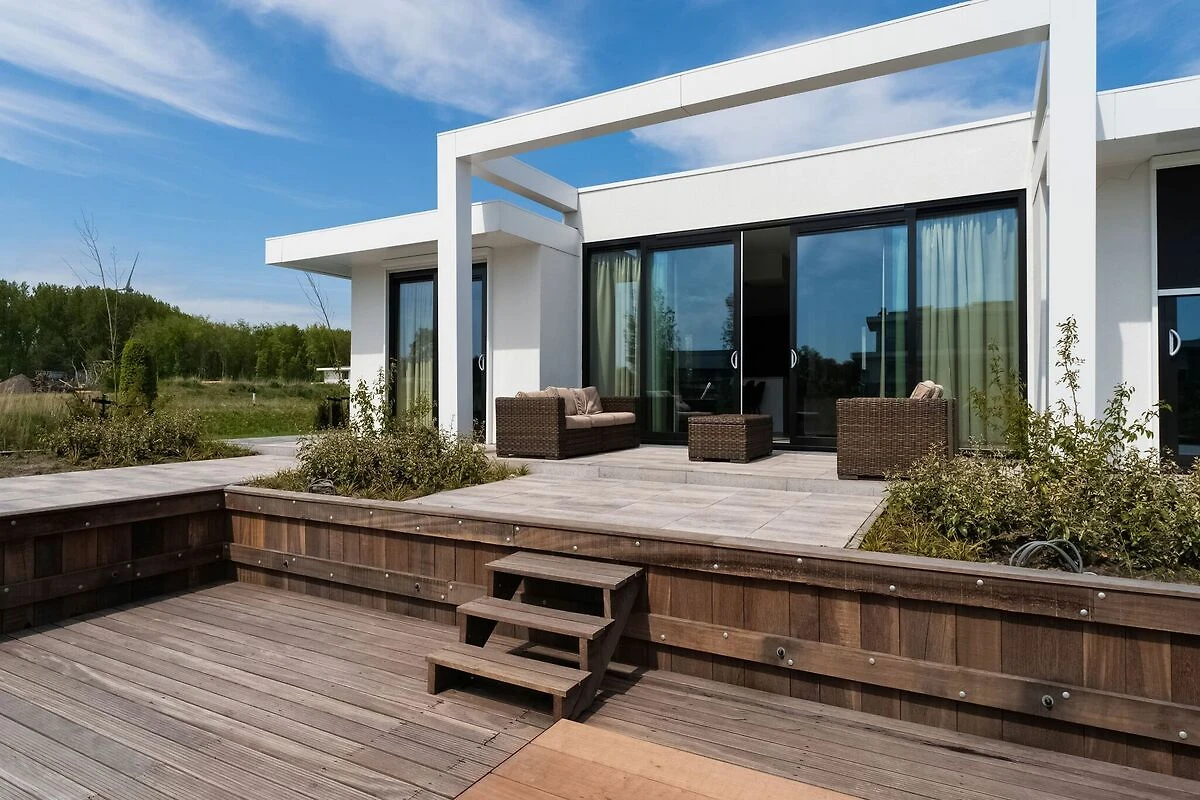 Diese moderne Villa in Zeewolde bietet eine ruhige Lage inmitten von Grün und Wasser - perfekt für einen erholsamen Urlaub. Der durchdacht gestaltete Wohnbereich öffnet sich zu einer Terrasse und einem Garten, wo Sie Ihre Mahlzeiten genießen oder einfach in der Sonne entspannen können. Ein privater Steg lädt zum Entspannen am Wasser ein, während die Kleinen auf dem Trampolin vergnügt sind oder sicher mit Hochstuhl und Kinderbett spielen können. Ob Sie grillen, im klimatisierten Innenbereich entspannen oder die ebenerdige Dusche genießen - diese Villa bietet Komfort pur. Natur und Abenteuer in Hülle und Fülle