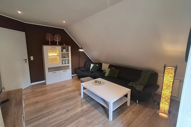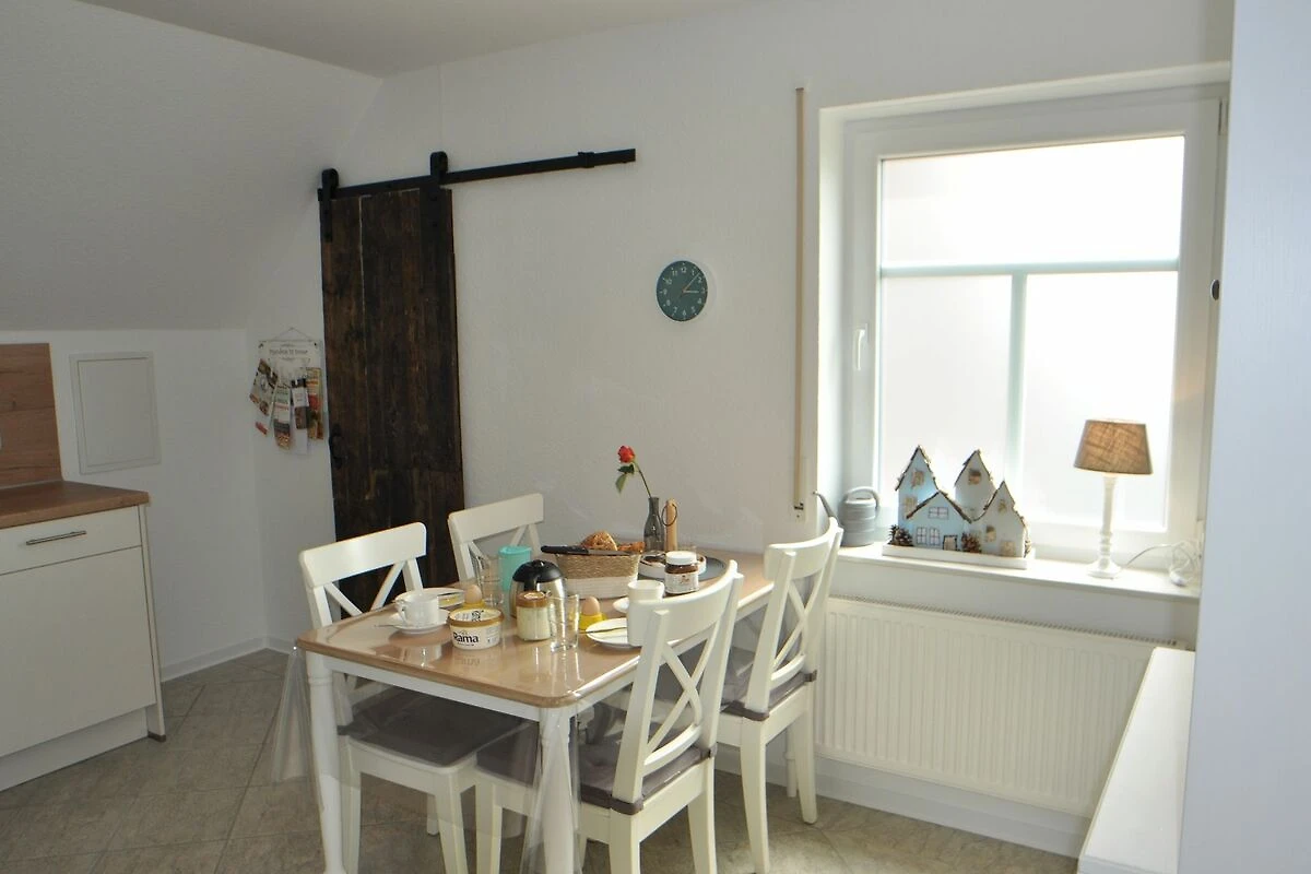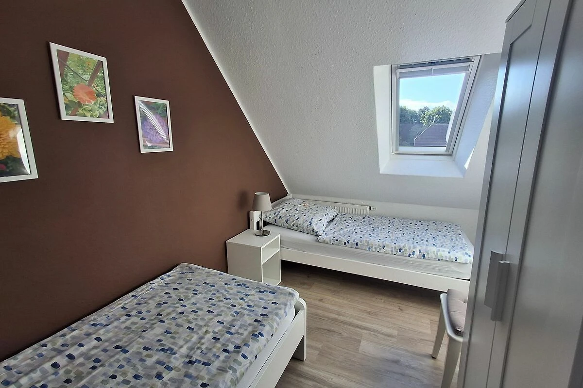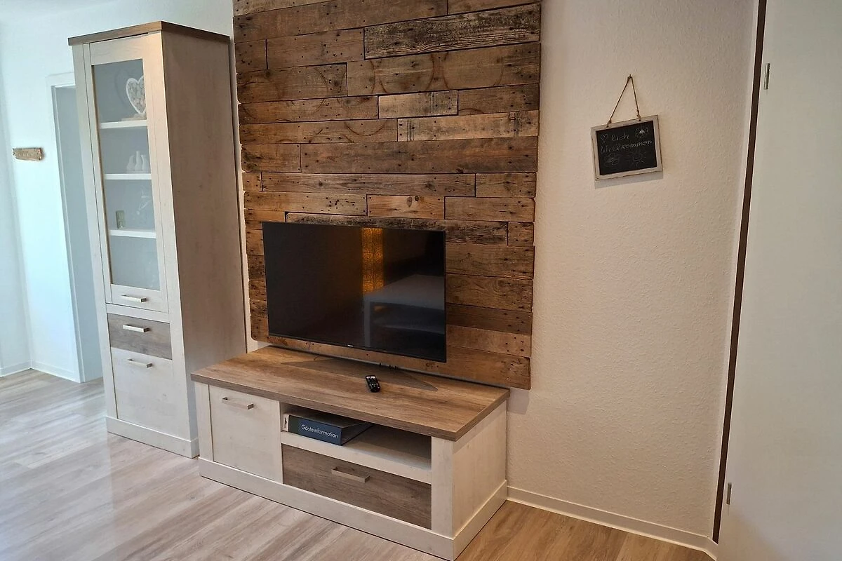 70 qm grosse Ferienwohnung im Obergeschoss für vier Personen. Anfang 2022 renovierte, modern und mit viel Liebe zum Detail eingerichtete helle Räume. Ihnen stehen ein Schlafzimmer mit französischem Bett (1,60 x 2 m) sowie ein Schlafzimmer mit zwei getrennt stehenden Betten (0,90 x 2 m) zur Verfügung. In der hellen Küche mit voll ausgestatteter Küchenzeile und Essbereich können Sie morgens ausgiebig frühstücken und ruhig und erholt in den Tag starten. Das Wohnzimmer bietet Ihnen eine gemütliche Sofa-Garnitur mit Flachbild-Fernseher. Das Badezimmer ist mit einer ebenerdigen Dusche und einem WC ausgestattet.