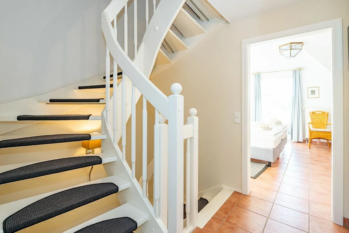Im 1. Obergeschoss befindet sich ein grosszügiges Schafzimmer mit Doppelbett (0,90 m x 2,00 m), Kleiderschrank, Stuhl und zusätzlichem Flachbild-TV. Und ein weiteres gemütliches Doppel-Schlafzimmer (0,90 x 2,00 m) mit Kleiderschrank, Stuhl und TV.