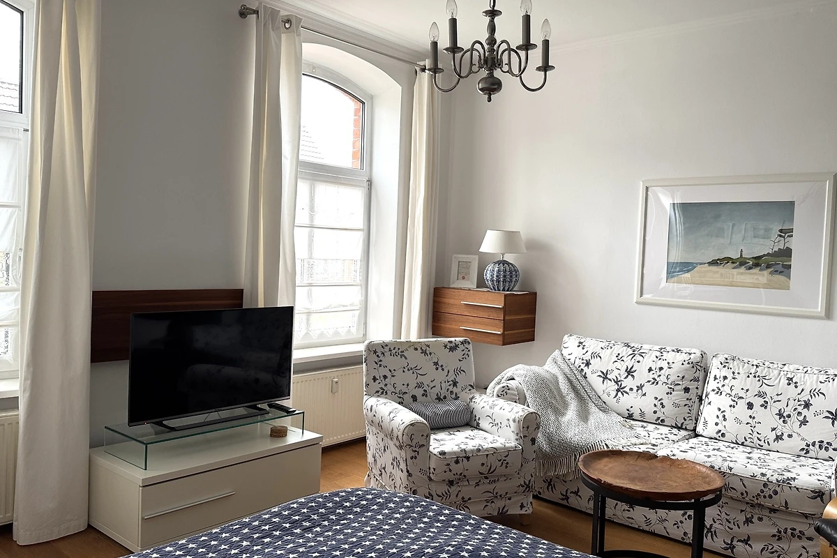 Unsere liebevoll eingerichtete kleine Ferienwohnung liegt ruhig und dennoch zentral im Herzen von Prerow. Was erwartet Sie?