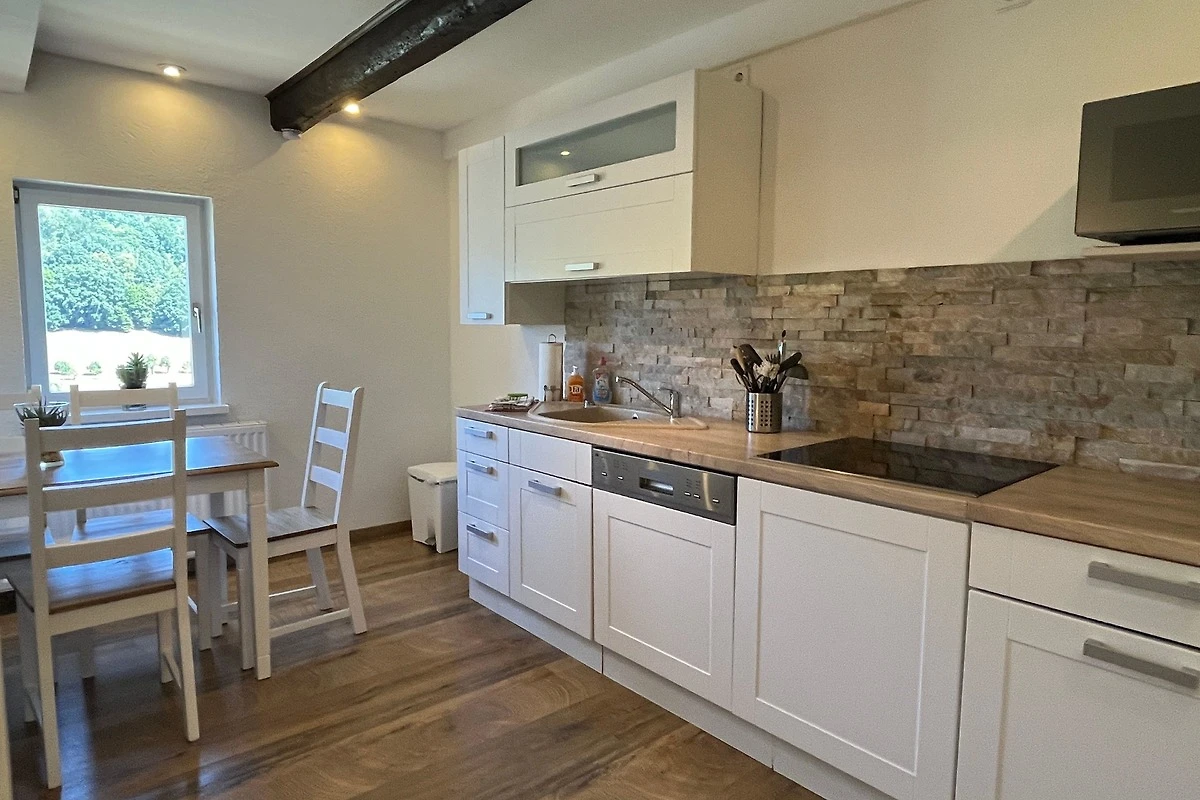 Eine Küche 11 m² mit kompletter Ausstattung wie ein Kochfeld, Spülmaschine,