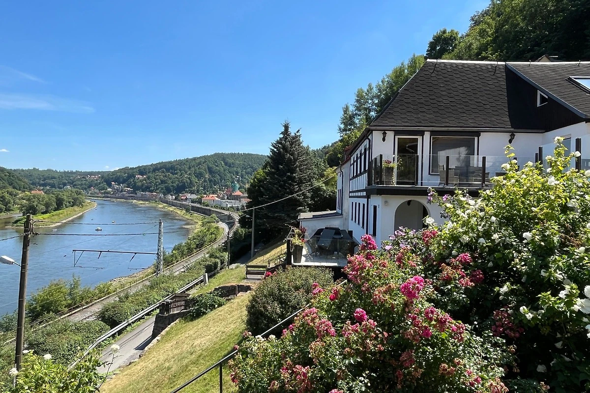 Die Lage unterhalb der Festung Königstein direkt am Elbradweg mit hervorragendem Panoramablick über das Elbtal.