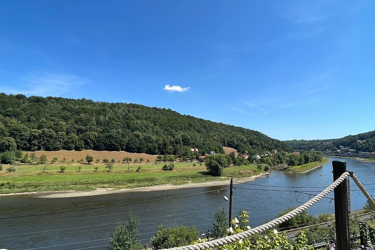 Aussicht entlang des Elbverlaufes zu sehen.