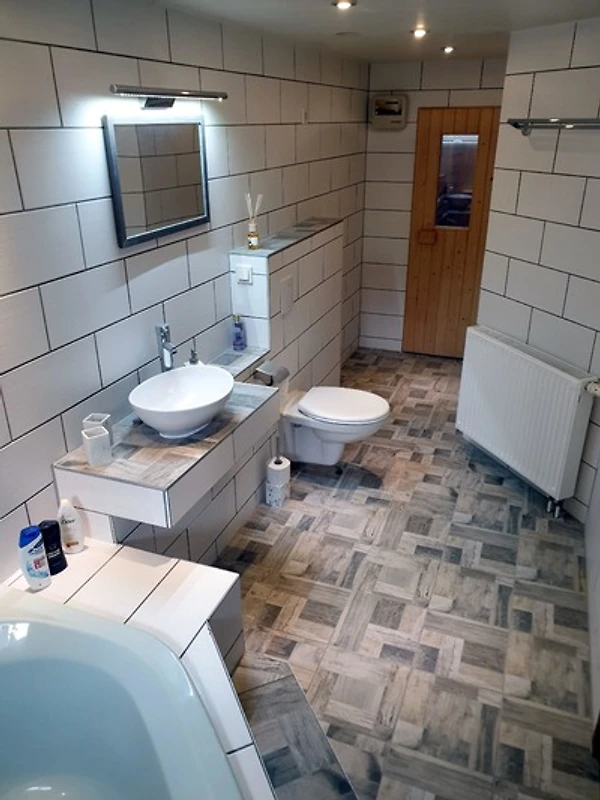 Ein Bad 13 m² mit Eckbadewanne sowie Toilette eine eigene Sauna