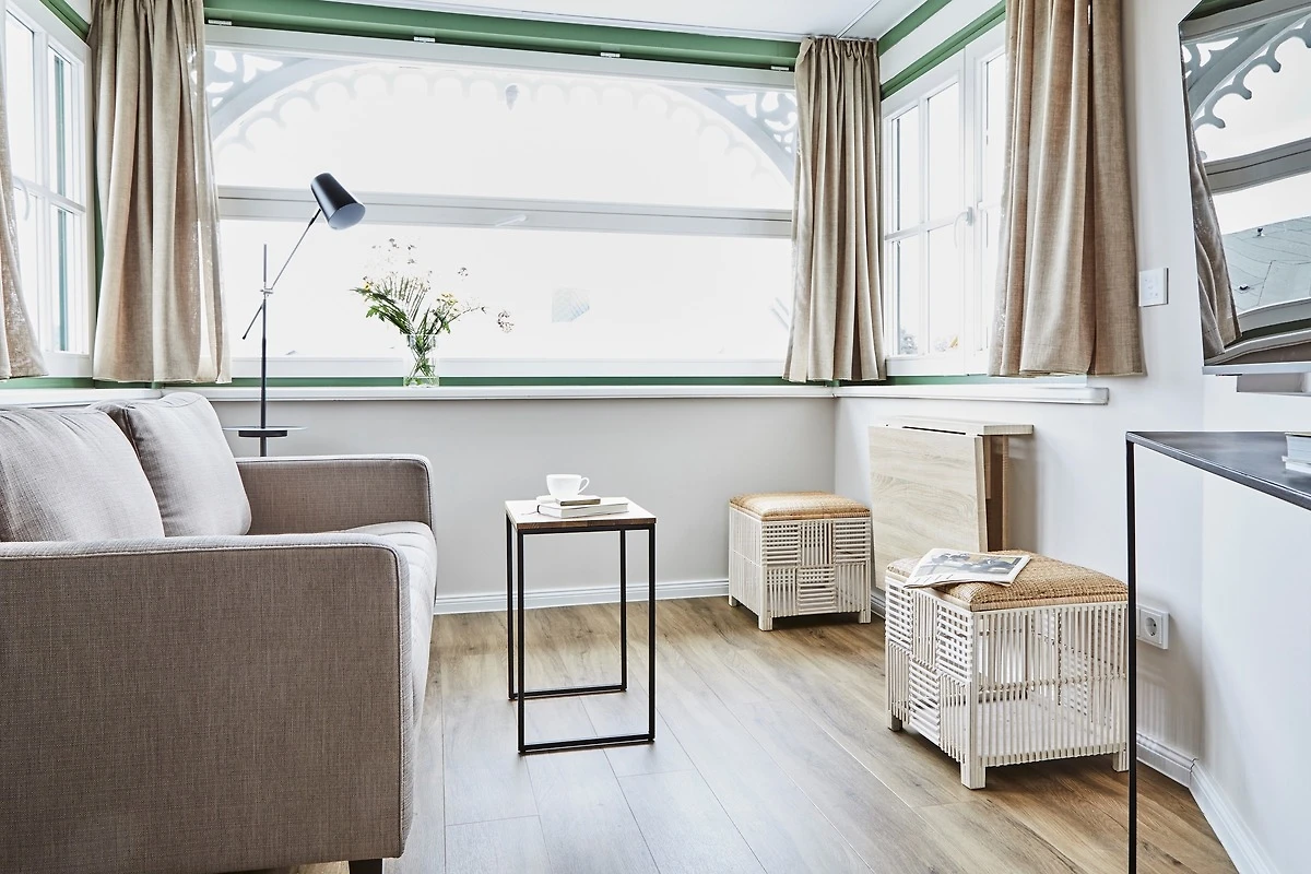 Die Ferienwohnung Junior Suite befindet sich im 2. Obergeschoss des historischen Haupthauses unserer kleinen Ferienanlage und hat eine Fläche von ca. 24 m2.