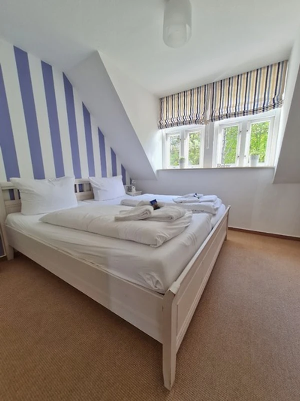 Wohnen Sie direkt am Südstrand, mit Blick auf den Kurpark, der durch den alten Baumbestand eine Oase der Ruhe ist. In nur wenigen Schritten sind Sie am Wasser und können Meer und Strand geniessen. Das Haus Eiche wird den ganzen Tag mit Sonne verwöhnt. Die komplett sanierte und liebevoll eingerichtete Wohnung erstreckt sich über 3 Etagen (EG, OG und DG) und lädt zum Wohlfühlen und Verweilen ein. Sie finden eine moderne Einbauküche mit anschliessendem Esszimmer und ein Doppelbett-Schlafzimmer mit Blick in den Park. Das Badezimmer liefert auf kleinem Raum allen Komfort, den man von einem Hotelbadezimmer erwartet. Im Dachgeschoss befindet sich zusätzlich noch ein beheizbarer Abstellraum. Highlights wie eine Nespressomaschine, Flatscreen, iPod Radio/CD Player, WLAN-Intern machen aus der Wohnung die perfekte Alternative zu einem Hotel am Strand. Im Garten gibt es zur gemeinsamen Nutzung mit Whg. Schwalbennest einen befestigten Sitzplatz/Terrasse mit einem kleinen Tisch, zwei Stühlen und einem Strandkorb während der Saison.