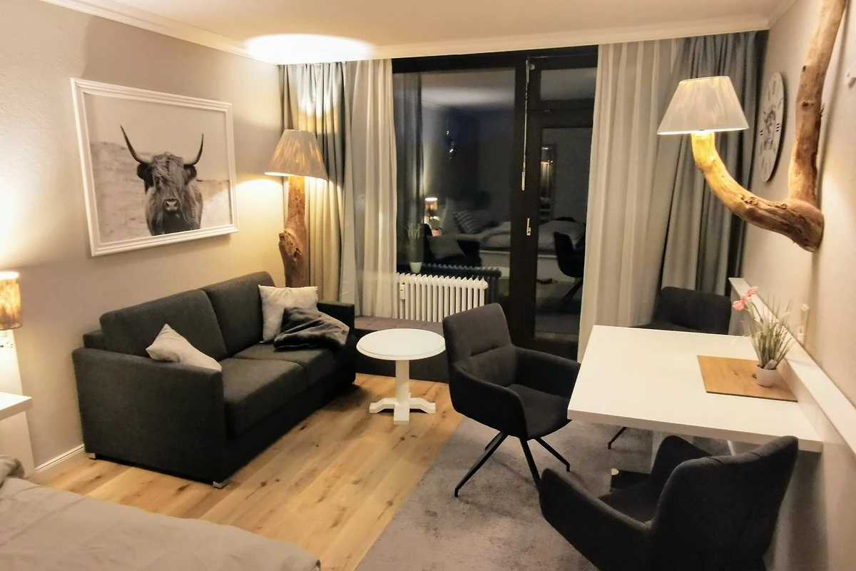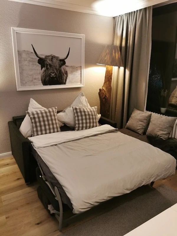 Unser Apartment bietet Ihnen ein grosses Doppelbett (1,80x2,00m) zusätzlich ein vollwertiges Schlafsofa mit Lattenrost und Matratze (1,40x2,00m). Gerne können Sie auch unser Babybett und den Kinderhochstuhl nutzen.