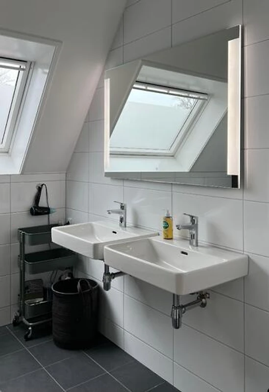 Schönes Badezimmer mit geschmackvoll verarbeiteten Materialen.