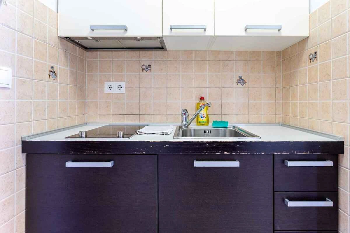 Der Eingang in Ihre Ferienwohnung ist überdacht. Wohn/Schlafzimmer mit 2 Zusatzbetten auf Schlafgelegenheit, Sitzecke, TV, Essecke und Zugang zur Terrasse (überdacht, Gartenmöbel). Küche im Wohn/Schlafzimmer mit Essecke, Elektroherd (Cerankochfeld, 2 Platten), Dunstabzugshaube, Kühlschrank (Eisfach), Mikrowelle, Toaster und Zugang zur Terrasse. Bad mit Waschmaschine, Dusche, 1 Waschbecken, WC und Fenster. Schlafzimmer mit 1 Doppelbett und TV.