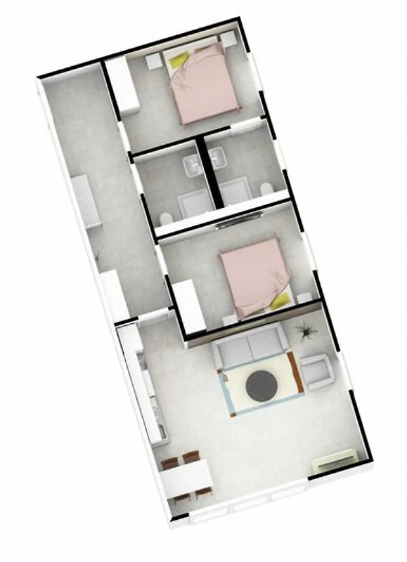 Die Wohnung hat 2 Schlafzimmer, die jeweils mit einem Boxspringbett (180x200 cm) und einem TV ausgestattet sind.