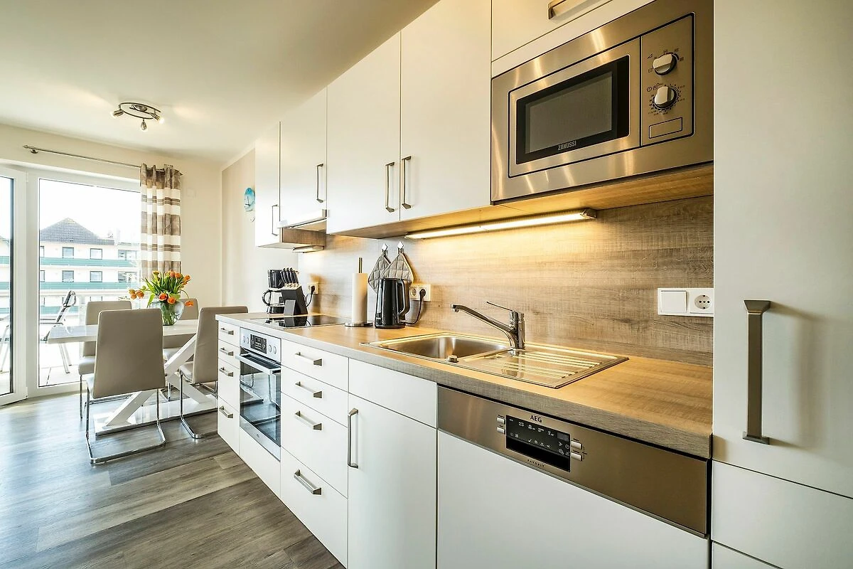Sehr schöne Wohnung, gut ausgestattet (endlich mal vernünftige Töpfe und Pfannen sowie Küchenzubehör). Auch beide Badezimmer waren angenehm. Die Wohnung ist sehr schön, auch der geräumige Aufzug ist optimal. Balkon mit Strandkorb war vom Wetter her nicht nutzbar, aber im Sommer wird es super sein. Und es gab Rolladen! Wir würden diese Wohnung wieder buchen.