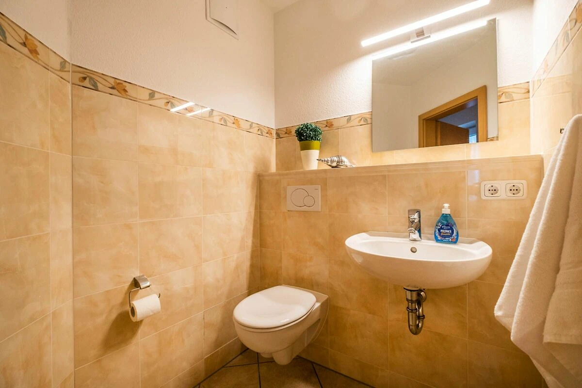 Sanitär: Duschbad mit Dusche (geringe Einstiegshöhe), Haar-Föhn, Kosmetikspiegel, Gäste-WC