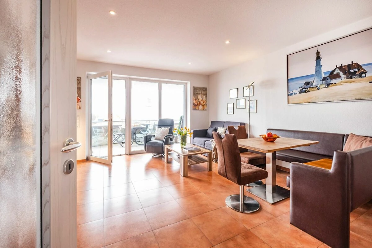Die Ferienwohnung 3.5 ist eine gemütliche 2-Raum-Wohnung mit Balkon in Südwest-Lage und direktem Blick auf den Hafen und den Leuchtturm. Die Küchenzeile und der Essbereich sind direkt im Wohnbereich integriert. Das Bad verfügt über eine Dusche, WC, Handtuchtrockner, Haar-Föhn. Vom Wohnbereich gelangen Sie direkt auf den Balkon.