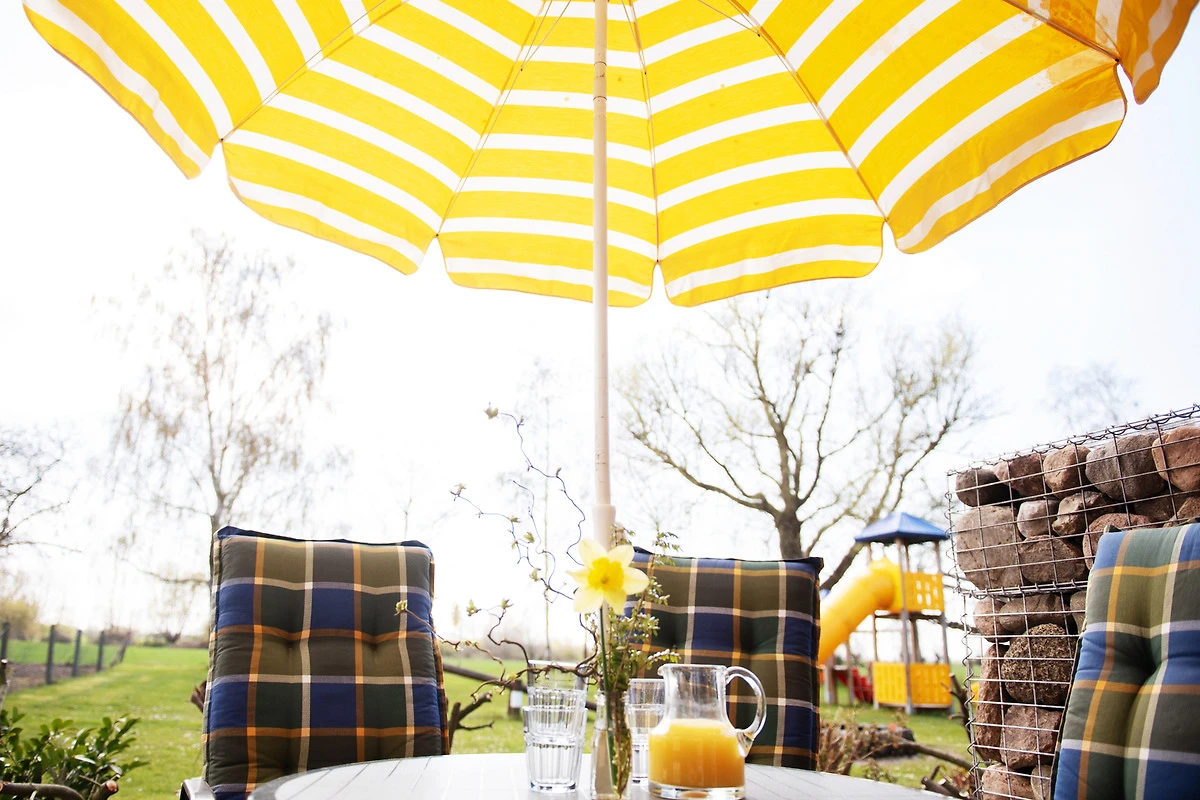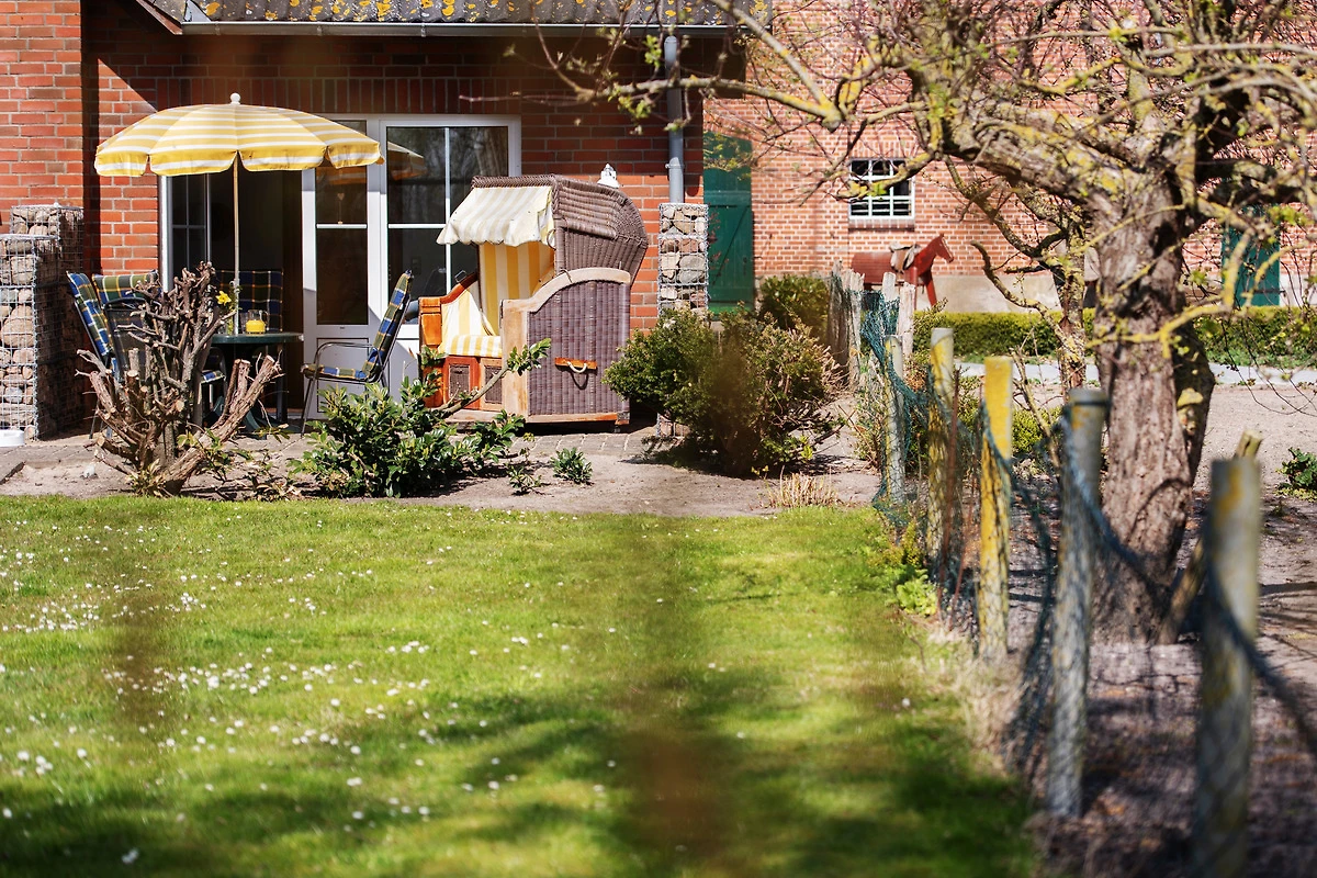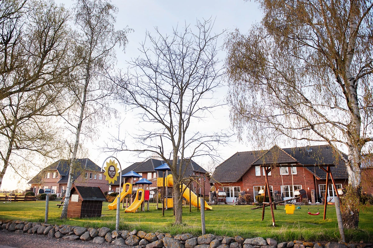 Von Ihrer Terrasse haben Sie einen unverbauten Blick auf den Spielplatz, über die Felder bis zur Ostsee.