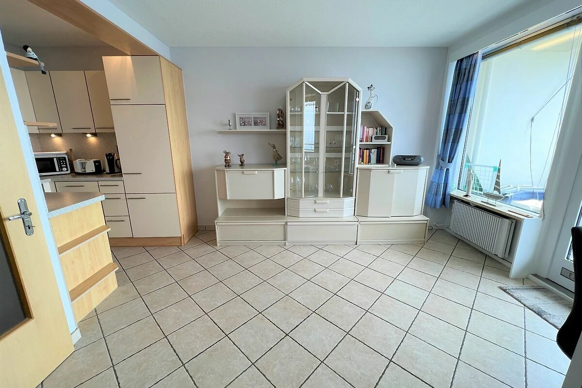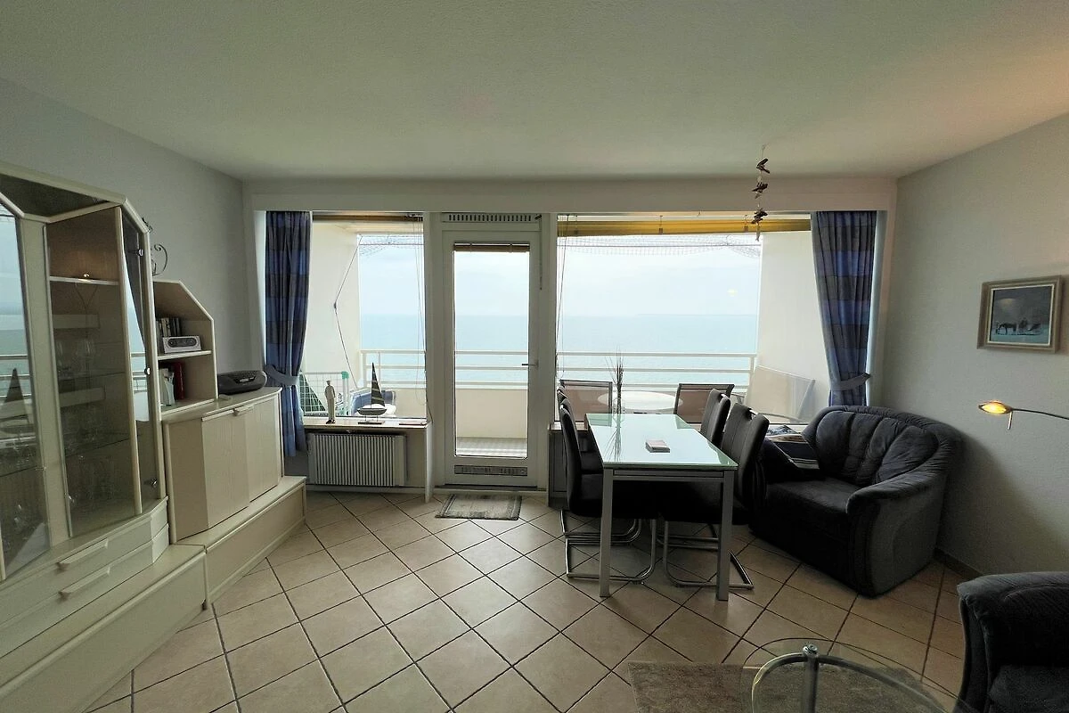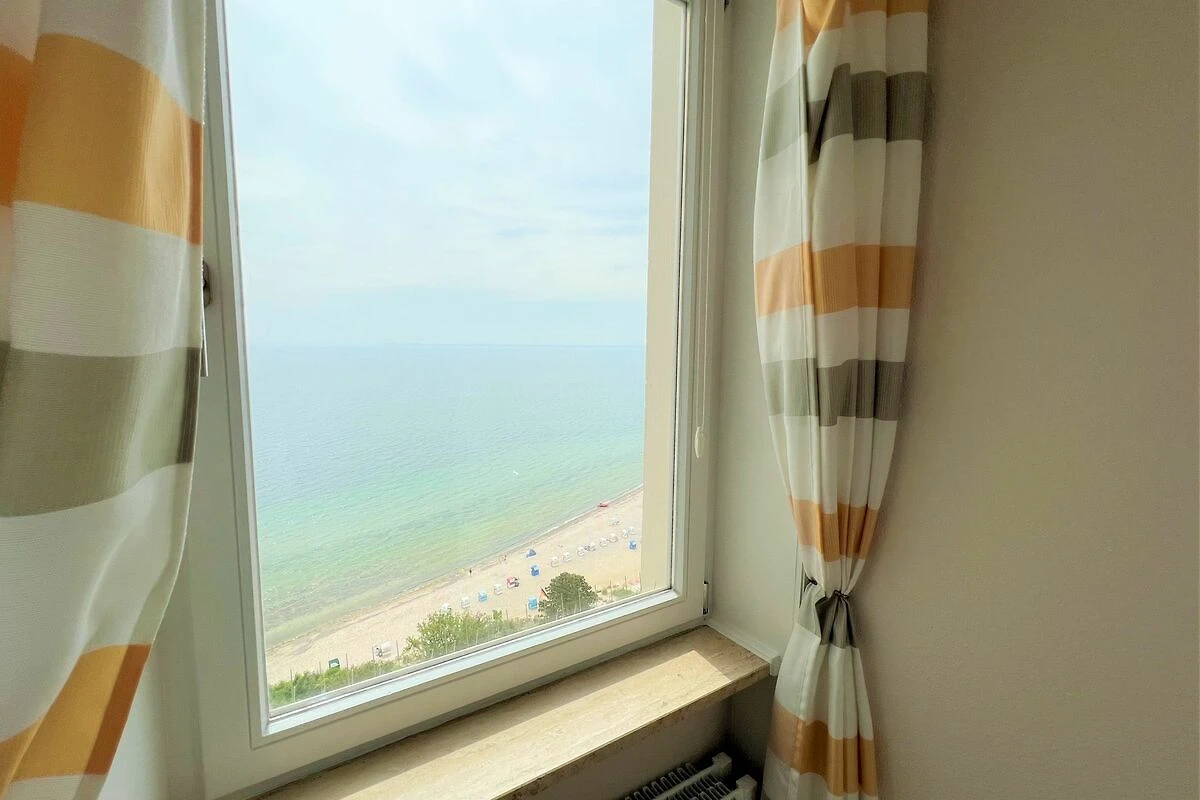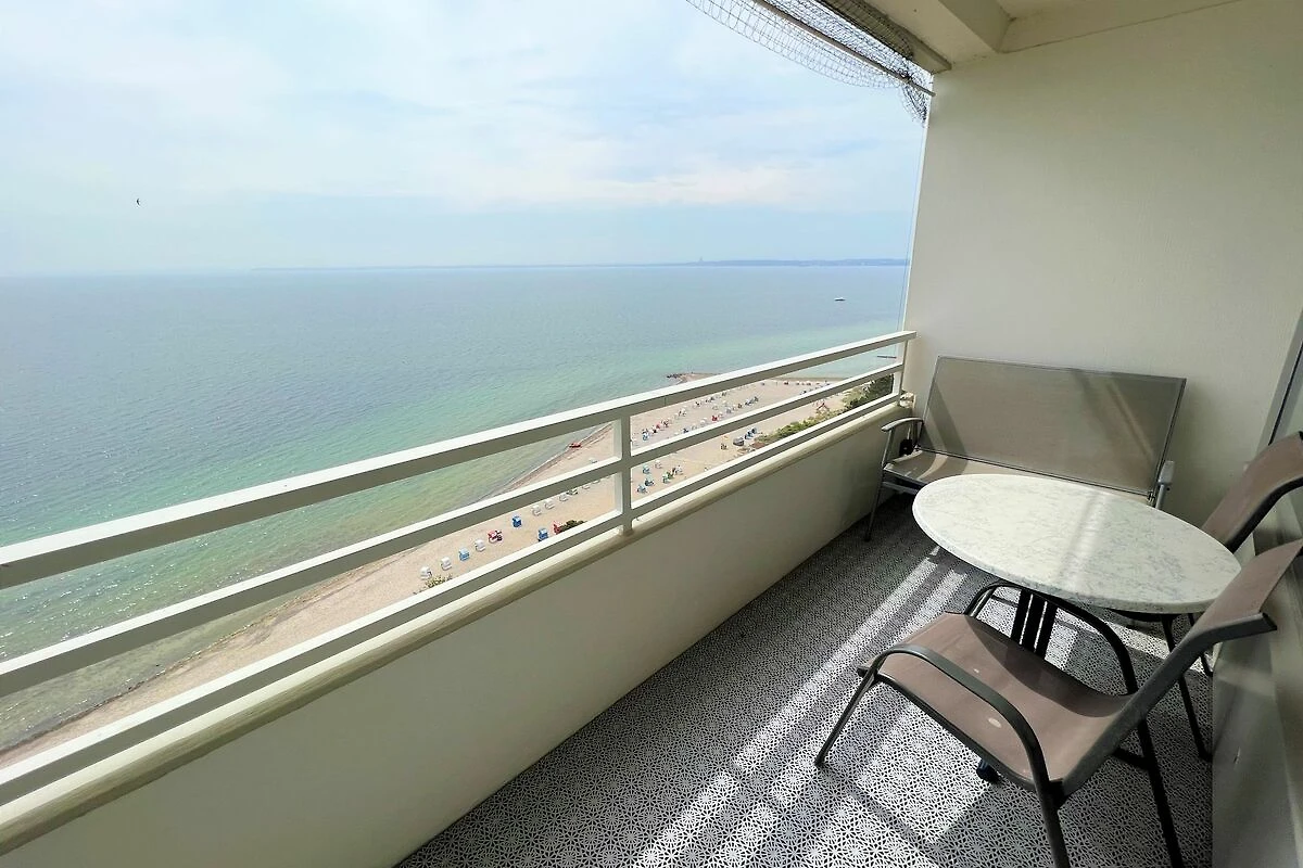 die Wohnung befindet sich in der 10. Etage mit Balkon in Süd-Ost-Lage und traumhaftem Ostseeblick über die Lübecker Bucht. Vom kombinierten Wohn- und Essbereich haben Sie Zugang zum Balkon. Die kleine, aber mit Spülmaschine, Backofen und Herd ausgestattete Küche, ist in den Wohn-/Essbereich integriert. Das Schlafzimmer hat ein Doppelbett (2 x 190 cm x 90 cm) und ein Fenster mit Ostseeblick - Aufwachen und das Meer sehen, was gibt es Schöneres im Urlaub? Im Wohnbereich steht zudem eine Schlafcouch (140 cm x 190 cm). Es gibt ein innenliegendes Duschbad. Zum Strand und zur Promenade sind es nur wenige Fußschritte. PKW-Stellplatz im Parkdeck, es führen Treppen von dort aus zur Wohnung. Über einen Seiteneingang gelangt man zum Fahrstuhl für ebenerdiges Be-und Entladen.