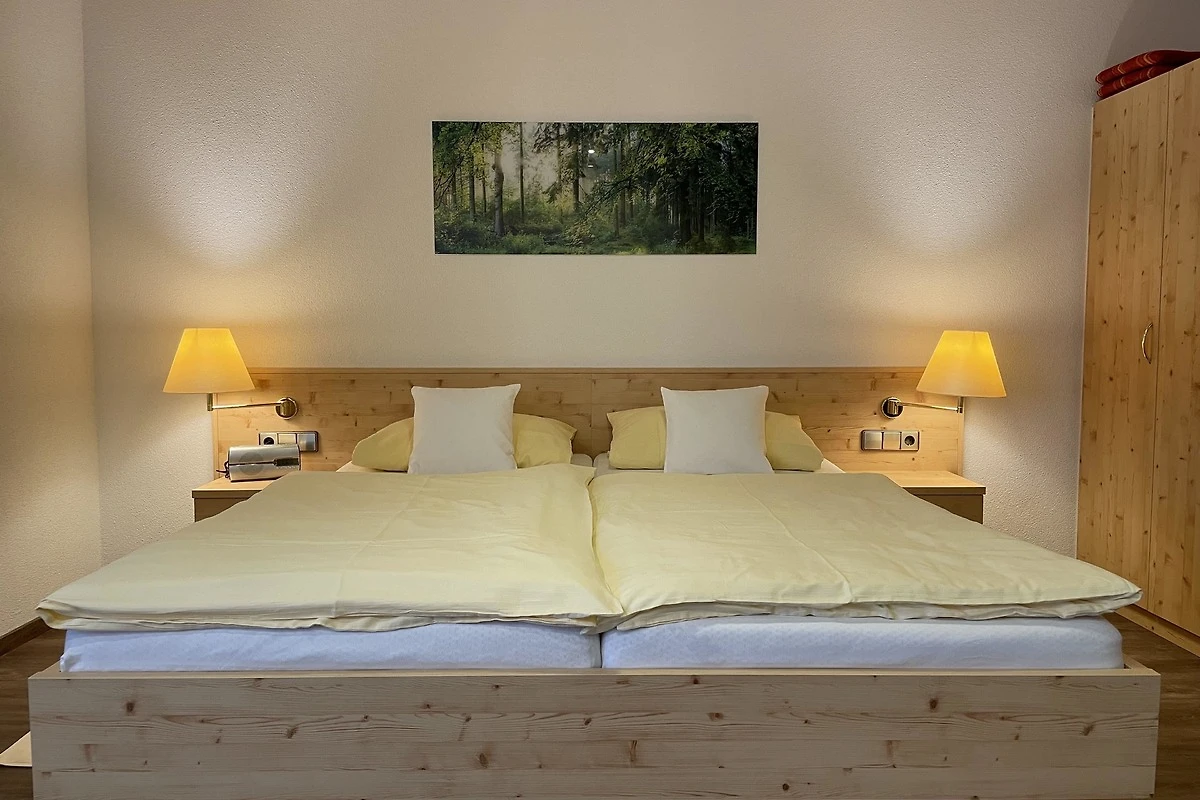 Die allergikerfreundliche 2-Zimmer-Ferienwohnung Belchen hat 1 Schlafzimmer (mit überlangem Doppelbett mit Federkernmatratzen) und 1 Wohn-/Schlafraum (mit überlangem Doppelbett mit Federkernmatratzen) und einem Balkon (Süd-/Sonnenseite). Die Küchenzeile ist mit 4-Platten-Herd und Backofen, Geschirrspülmaschine, Kühlschrank mit Gefrierfach, Kaffeemaschine mit Thermoskanne, Wasserkocher, Toaster ausgestattet. Bad mit Dusche/WC, Fön. Komfortable Ausstattung mit zwei SAT/TVs, W-LAN, Radio, Rollläden, Schallschutztüren. Kostenfreier Parkplatz am Haus. Brötchenservice auf Wunsch.