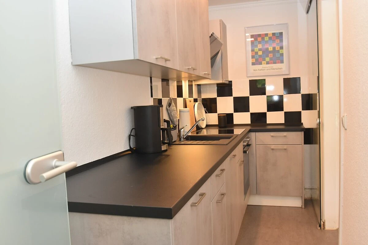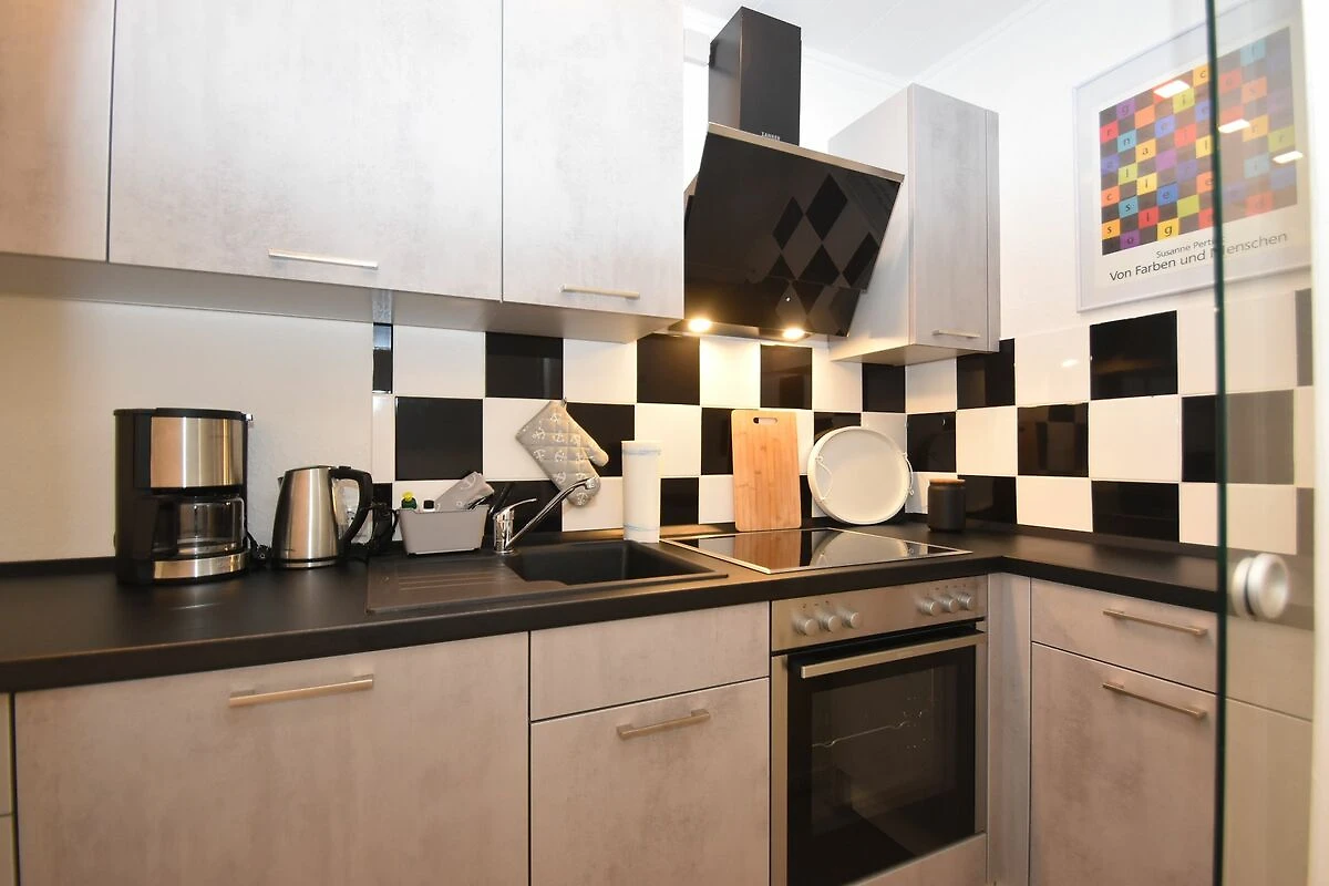 Die kleine, aber gut ausgestattete, geschlossene Küche verfügt über alle notwendigen Annehmlichkeiten, die Sie für die Zubereitung Ihrer Mahlzeiten benötigen. Dazu gehören ein Ceran-Herd, Backofen, Kühlschrank und eine Spülmaschine. Sie finden zudem eine Kaffeemaschine, Toaster und Wasserkocher vor, damit Sie Ihre Morgen mit einer Tasse frisch gebrühtem Kaffee genießen können. Außerdem sind Geschirr, Besteck und Küchenutensilien vorhanden, sodass Sie sofort mit dem Kochen beginnen können.