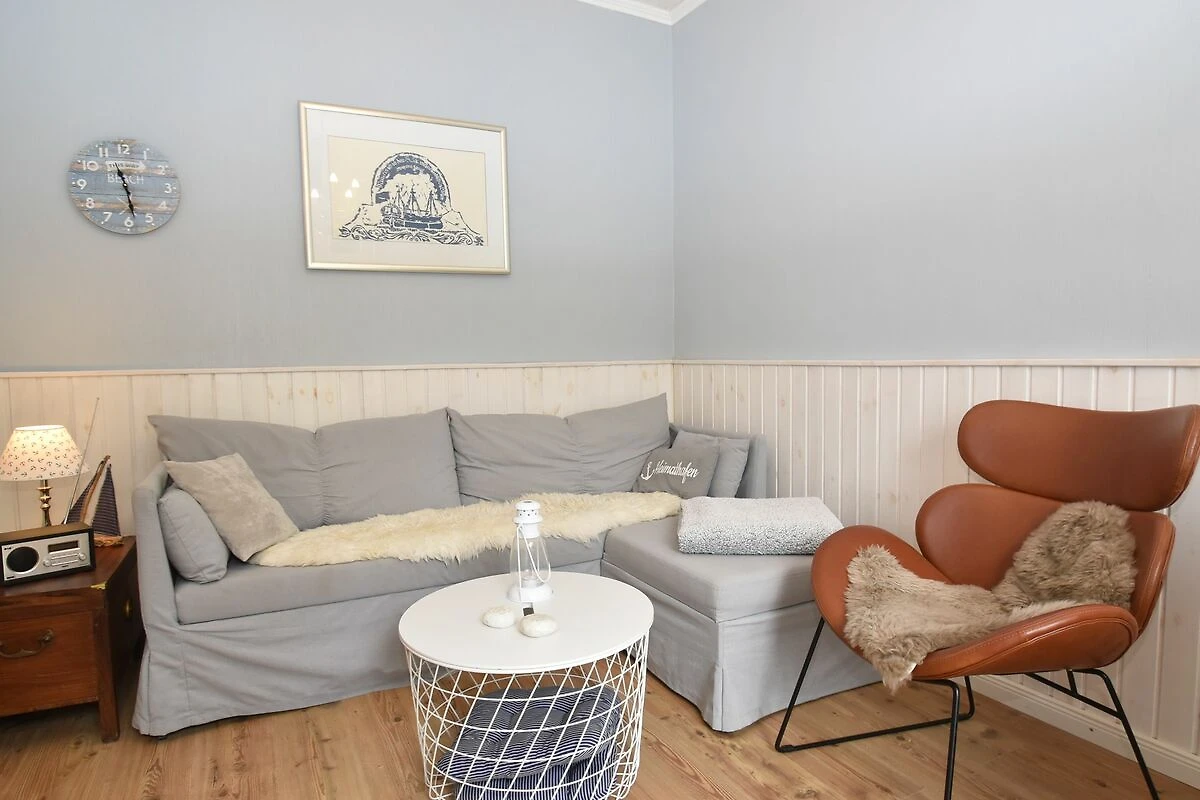 Genießen Sie den Komfort eines gemütlichen Schlafzimmers, das mit einem hochwertigen Bett ausgestattet ist, um Ihnen erholsame Nächte zu garantieren. Der offene Wohnbereich mit Sofaecke und Essbereich lädt zu entspannten Stunden ein. Hier können Sie den Abend bei einem guten Film auf dem TV-Gerät oder einem spannenden Buch mit Blick auf den kleinen Garten ausklingen lassen. WLAN steht Ihnen selbstverständlich zur Verfügung, damit Sie auch im Urlaub stets online bleiben können.
