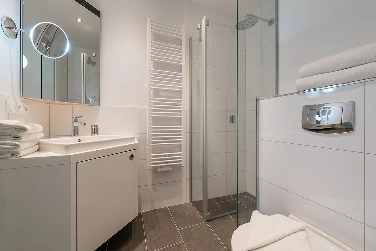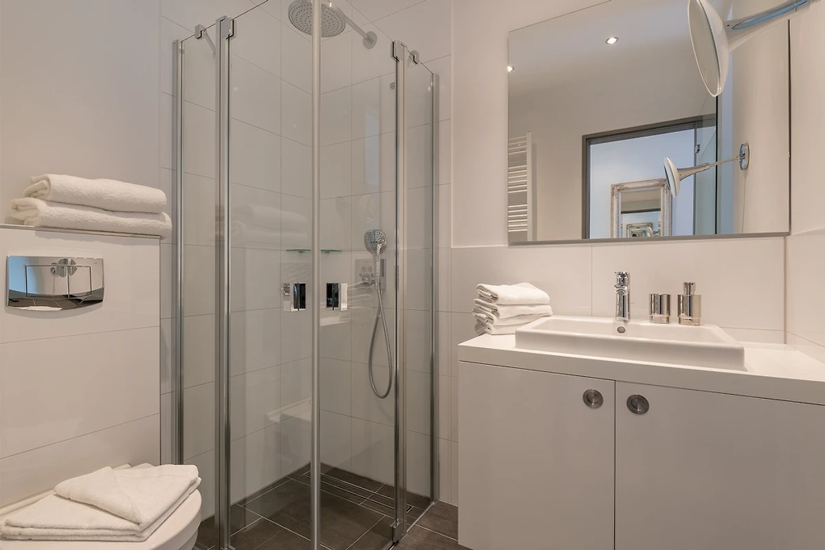 Die Küche ist ein Traum für Genießer: Hochwertige Geräte, Nespresso-Maschine, Geschirrspüler und alles, was Sie zum Kochen brauchen, stehen bereit. Das Wohnzimmer empfängt Sie mit gemütlichen Sofas, einem Essbereich für gemeinsame Stunden und einer einladenden Atmosphäre, in der man sich sofort zuhause fühlt. Fußbodenheizung, kostenloses WLAN, Kabel-TV, DVD-Player und Zimmersafe machen den Aufenthalt rundum komfortabel. Ihr privater PKW-Stellplatz direkt vor der Villa sorgt für stressfreie Anreise, Fahrräder können sicher untergestellt werden, und Hunde sind herzlich willkommen – weil auch Ihre Vierbeiner Erholung verdienen.