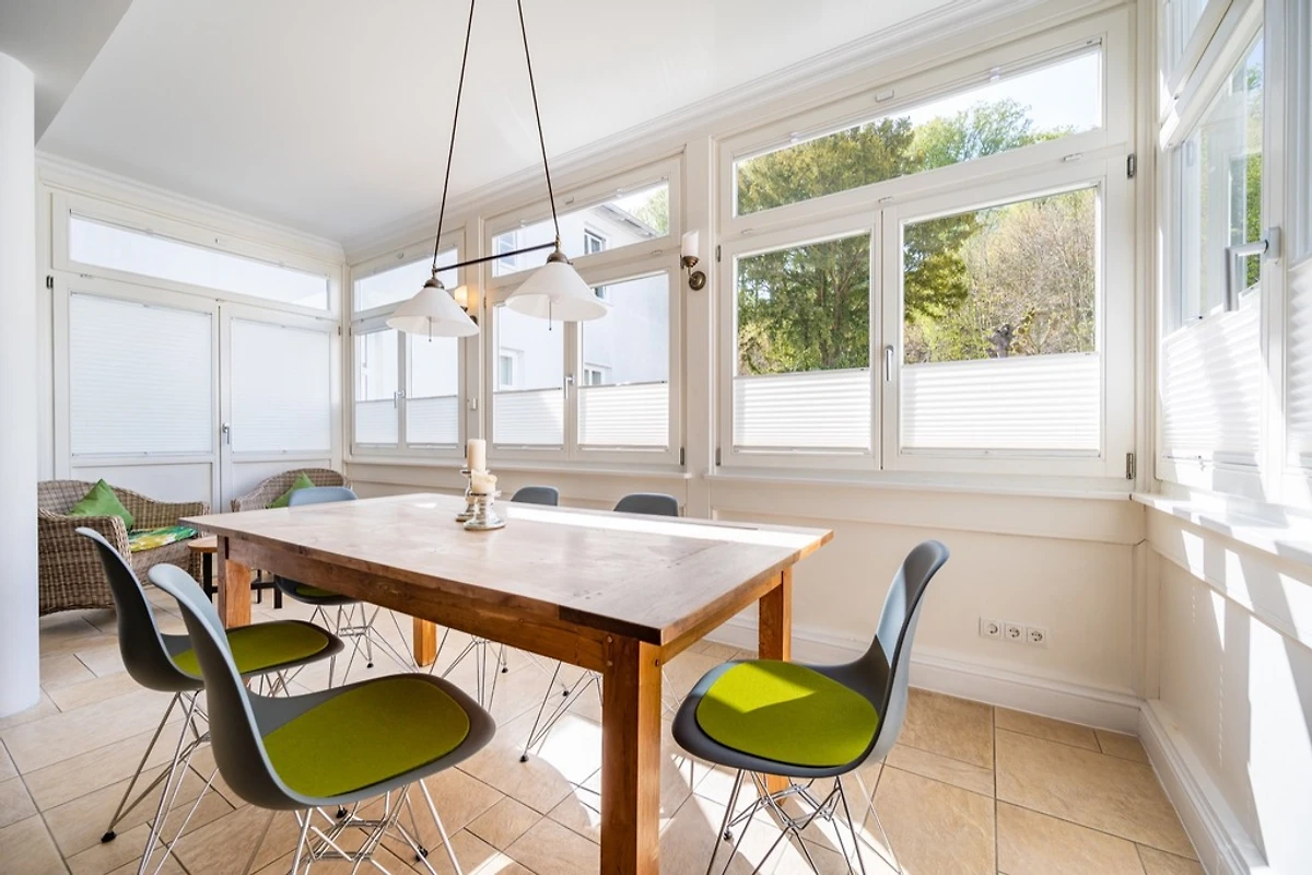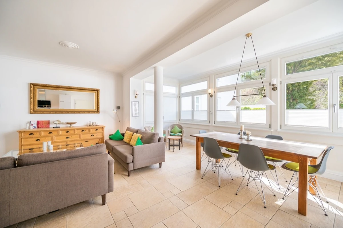 Auf 96 m² im Erdgeschoss erwartet Sie ein stilvolles Zuhause auf Zeit. Zwei geschmackvoll eingerichtete Schlafzimmer mit jeweils eigenem Bad schenken Ihnen Privatsphäre und Erholung, während die komfortable Schlafcouch Platz für bis zu fünf Gäste bietet. Zwei Terrassen – eine vom Wintergarten aus, die andere auf der Rückseite der Villa – laden dazu ein, morgens den ersten Kaffee in der Sonne zu genießen oder abends bei einem Glas Wein den Tag ausklingen zu lassen. Jeder Moment draußen ist von Natur umgeben, ungestört und einfach magisch.
