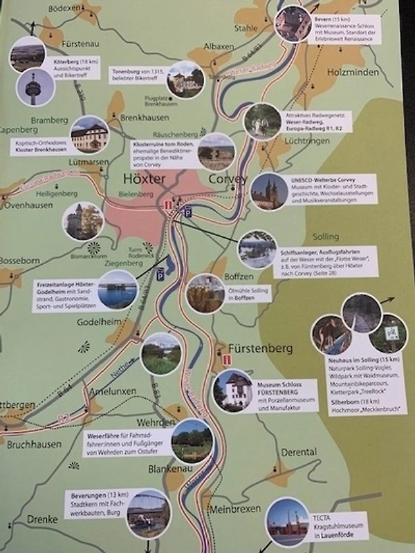 Der Fahrradweg liegt direkt vor der Tür - die Weser in unmittelbarer, fussläufiger Entfernung ebenso wie das Weltkulturerbe ,Schloss Corvey' und die Stadt hat vieles zu bieten - Schwimmbäder, das Jacob-Pins-Museum (um nur einiges zu nennen) viel Natur im Weserbergland zum Durchatmen und Seele baumeln lassen.