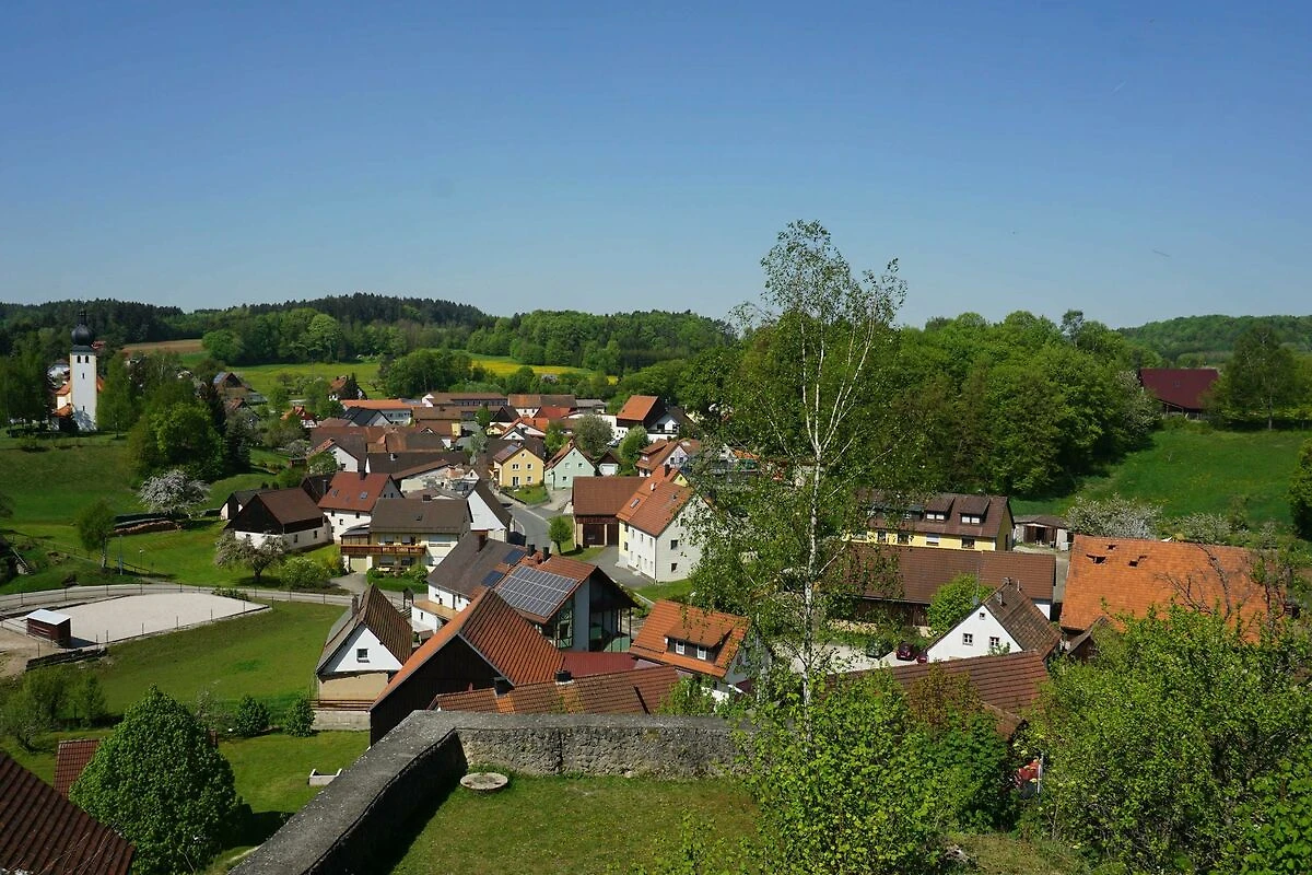 Unser Haus befindet sich zentral im Ortskern, ist aber ruhig von der Strasse zurückversetzt gelegen. Die nächsten Einkaufsmöglichkeiten erreichen Sie nach 3 bzw. 7 km. Die nächste Bushaltestelle ist ca. 400 m entfernt. Für das leibliche Wohl sorgen 2, zeitweise auch 3 örtliche Gastwirtschaften. Nordic Walking Startpunkt direkt im Ort und zentraler Ausgangspunkt für Wanderungen. Kletterfelsen befindet sich in unmittelbarer Nähe. Mehrere Schwimm- bzw. Freibäder, sowie Höhlen, Burgen, Minigolfanlagen, Golfplätze, eine Sommerrodelbahn und ein Fossilienklopfplatz sind im Umkreis von 20 km erreichbar.
