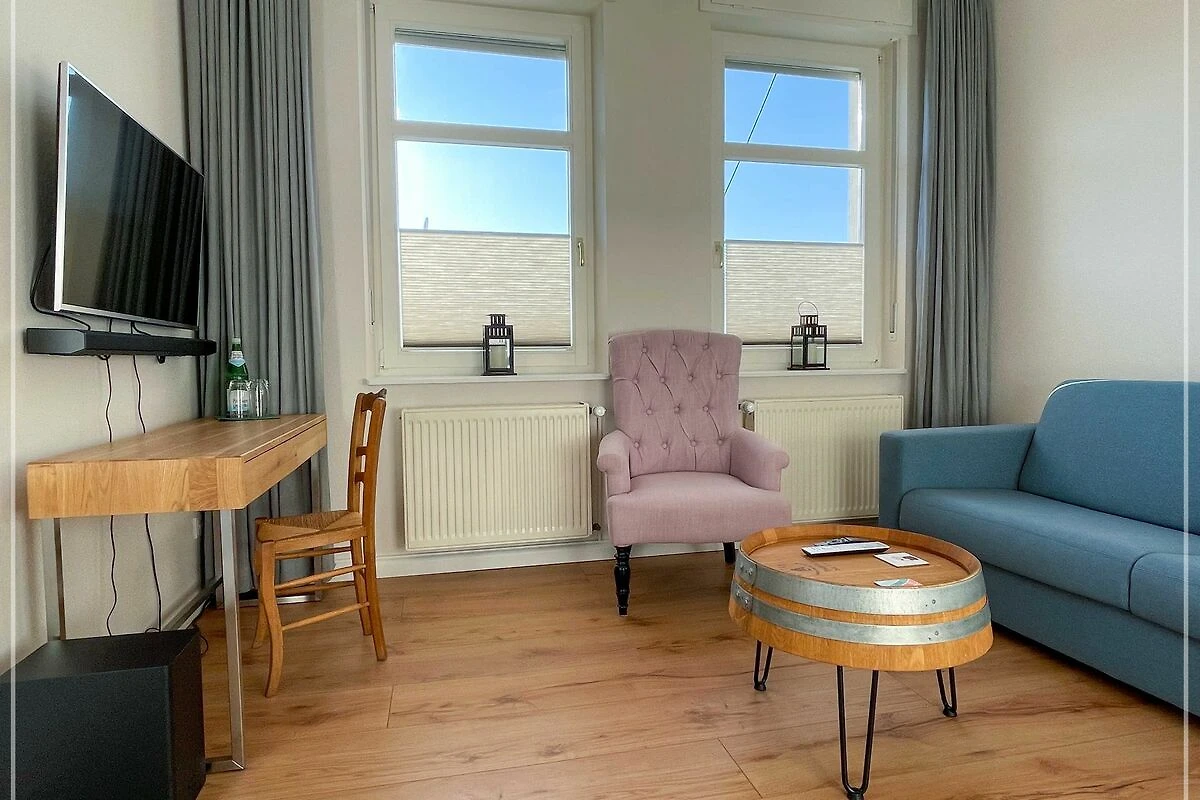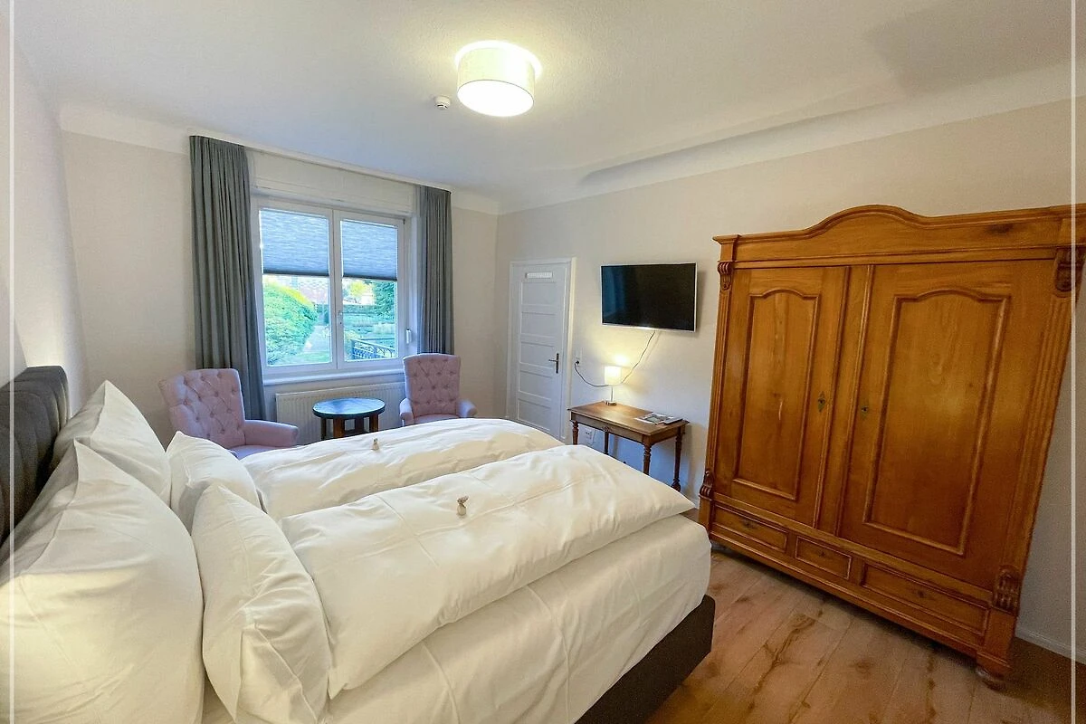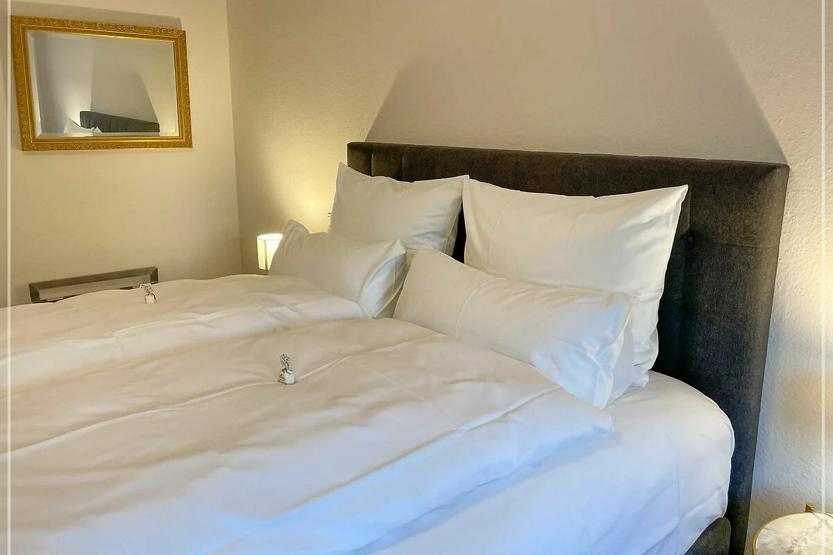 Alle Ferienwohnungen sind zeitgemäss und geschmackvoll mit antiken und trendigen Designer-Möbeln in einem durchdachten Farbkonzept eingerichtet. Jedes Apartment bietet ein separates Schlafzimmer mit luxuriösem Boxspringbett, ein eigenes, abschliessbares Badezimmer mit Fenster, Dusche und Haartrockner, ein gemütliches Wohnzimmer, bequeme Lese-Sessel, einen Esstisch und eine voll ausgestattete Küche mit Backofen, Ceran-Kochfeld, Kühlschrank, Mikrowelle, Toaster, Wasserkocher, Spülmaschine sowie Töpfen, Geschirr, Gläsern und Koch- und Backutensilien. Zur Unterhaltung stehen in jeder Ferienwohnung zwei Flachbild-HDTV mit Satellitenempfang, eine Bluetooth Soundbar und eine gute Auswahl an Gesellschaftsspielen zur Verfügung. Geschäftsreisende freuen sich über einen Arbeitsplatz, kostenloses WLAN mit Highspeed-Internet und einen Laptop-Safe. Zudem befinden sich in jedem der Saar-Apartments ein Bügelbrett mit Bügeleisen, eine Waschmaschine und im Keller steht ein Kondenstrockner bereit. Bettwäsche, Handtücher, Seife und Mittel zur Händedesinfektion sind ebenfalls vorhanden. Zusätzlich können ein faltbares Kinder-Reisebett mit komfortabler Matratze und ein Kinder-Hochstuhl angefragt werden.