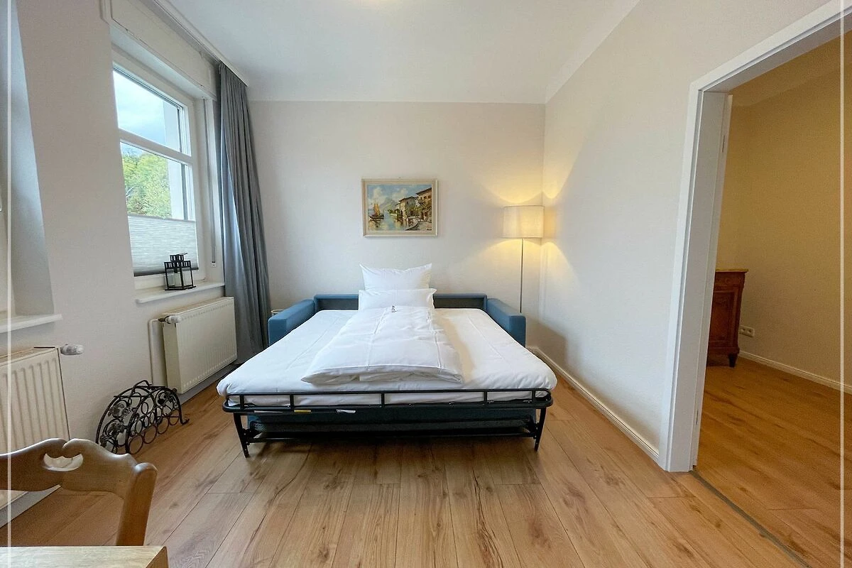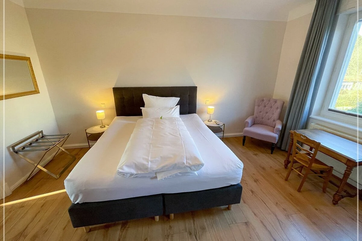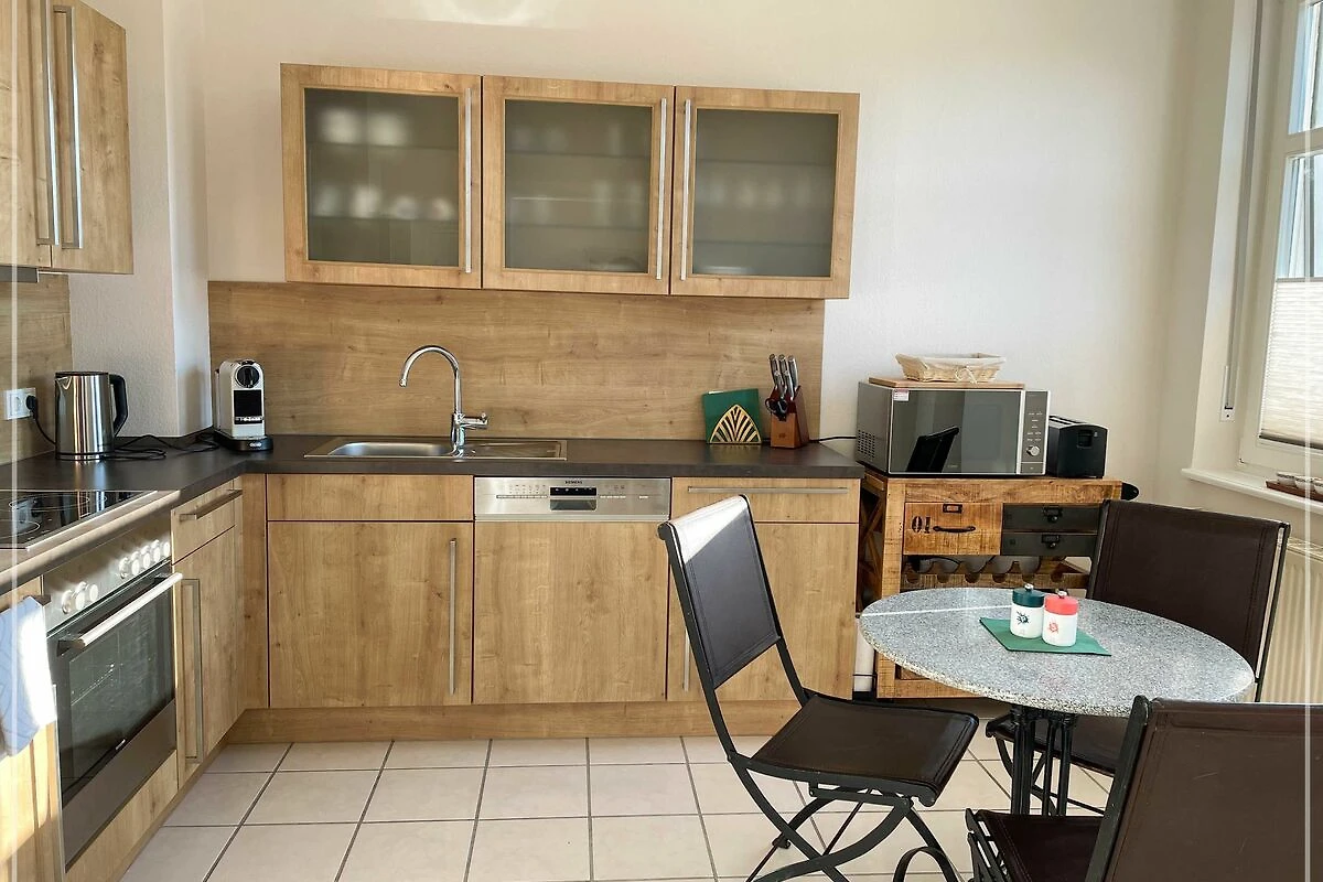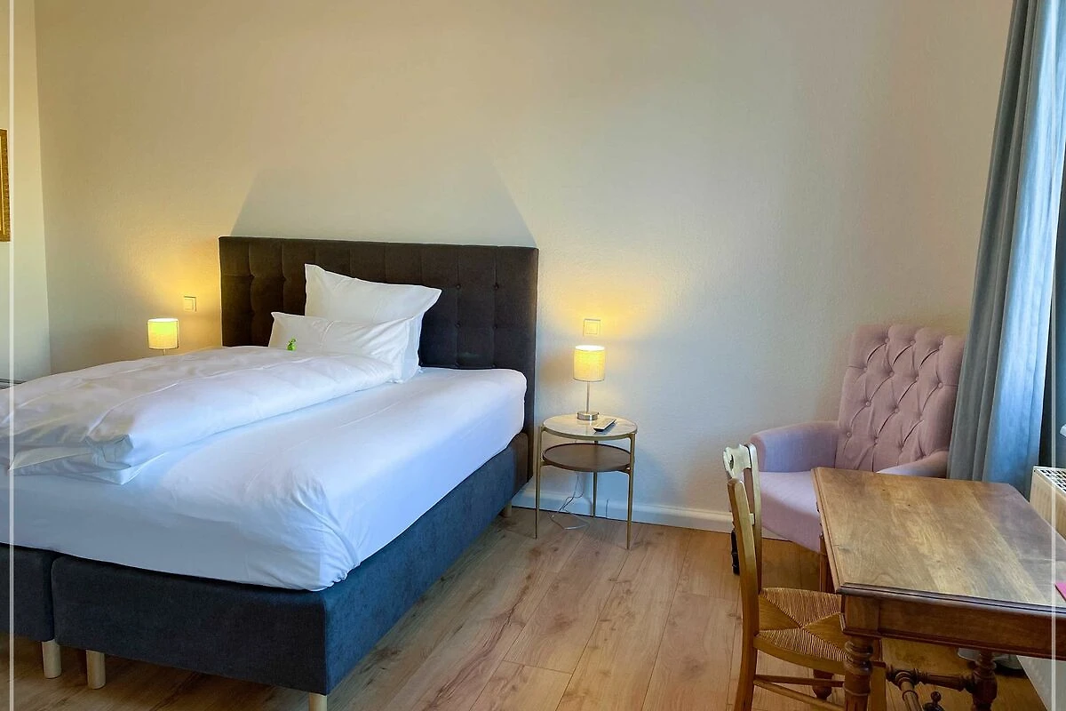 Alle Ferienwohnungen sind zeitgemäss und geschmackvoll mit antiken und trendigen Designer-Möbeln in einem durchdachten Farbkonzept eingerichtet. Jedes Apartment bietet ein separates Schlafzimmer mit luxuriösem Boxspringbett, ein eigenes, abschliessbares Badezimmer mit Fenster, Dusche und Haartrockner, ein gemütliches Wohnzimmer, bequeme Lese-Sessel, einen Esstisch und eine voll ausgestattete Küche mit Backofen, Ceran-Kochfeld, Kühlschrank, Mikrowelle, Toaster, Wasserkocher, Spülmaschine sowie Töpfen, Geschirr, Gläsern und Koch- und Backutensilien. Zur Unterhaltung stehen in jeder Ferienwohnung zwei Flachbild-HDTV mit Satellitenempfang, eine Bluetooth Soundbar und eine gute Auswahl an Gesellschaftsspielen zur Verfügung. Geschäftsreisende freuen sich über einen Arbeitsplatz, kostenloses WLAN mit Highspeed-Internet und einen Laptop-Safe. Zudem befinden sich in jedem der Saar-Apartments ein Bügelbrett mit Bügeleisen, eine Waschmaschine und im Keller steht ein Kondenstrockner bereit. Bettwäsche, Handtücher, Seife und Mittel zur Händedesinfektion sind ebenfalls vorhanden. Zusätzlich können ein faltbares Kinder-Reisebett mit komfortabler Matratze und ein Kinder-Hochstuhl angefragt werden.