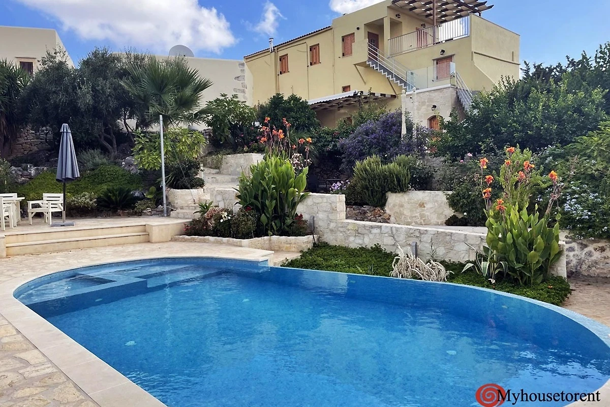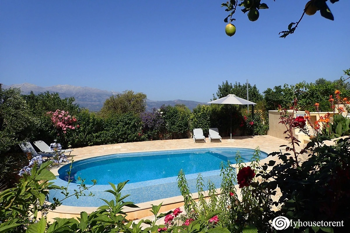 Der Garten ist mit mediterranen Bäumen, einer Vielzahl von Blumen und Kräutern wie Basilikum, Oregano, Minze, Lavendel und Thymian bepflanzt und bietet viele schattige Plätze zum Entspannen mit einem 32 Quadratmeter großen Überlaufpool mit Sonnenliegen, Pooltüchern, einer Poolbar mit großem Gartentisch und BBQ
