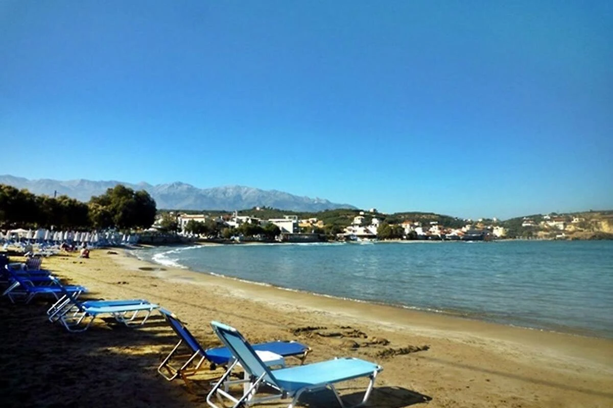 Bei 6 kms. Almyrida. Sandstrand mit allen Einrichtungen, viele Tavernen, Bars, Supermarkt