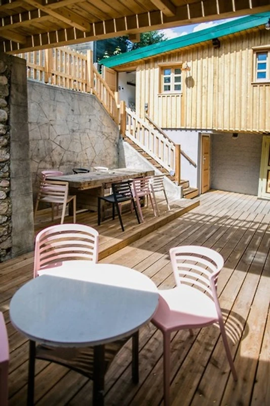 Das Apartment verfügt über einen privaten Eingang. Im gemütlichen Innenhof haben Sie die Möglichkeit andere Gäste zu treffen, an der grossen Tafel zu essen oder im Garten zu verweilen.