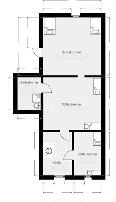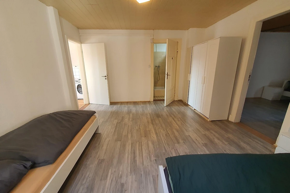 Die Wohnung hat 3 Zimmer und ist mit 6 komfortablen Einzelbetten, Kleiderschränken, Stühlen und Tisch, W-Lan sowie TV eingerichtet.