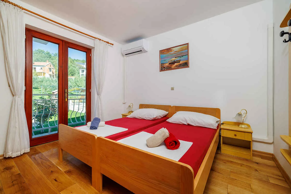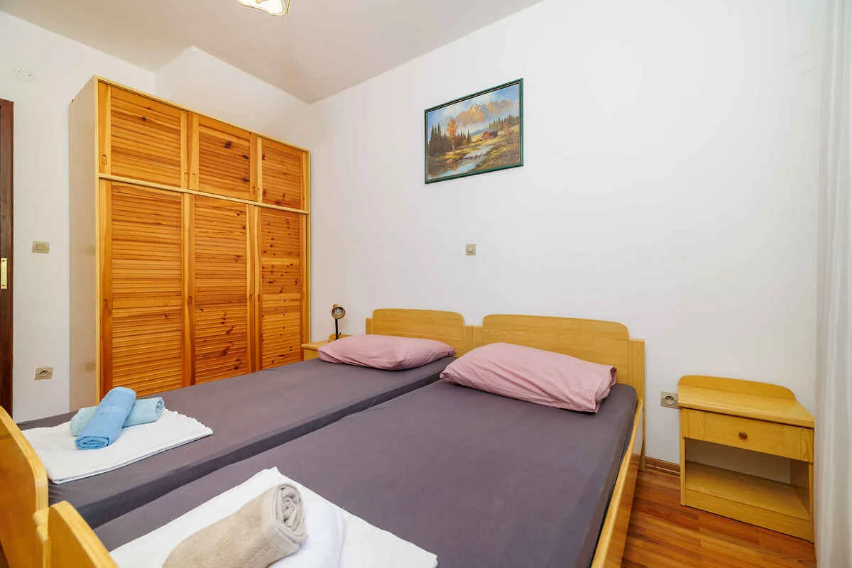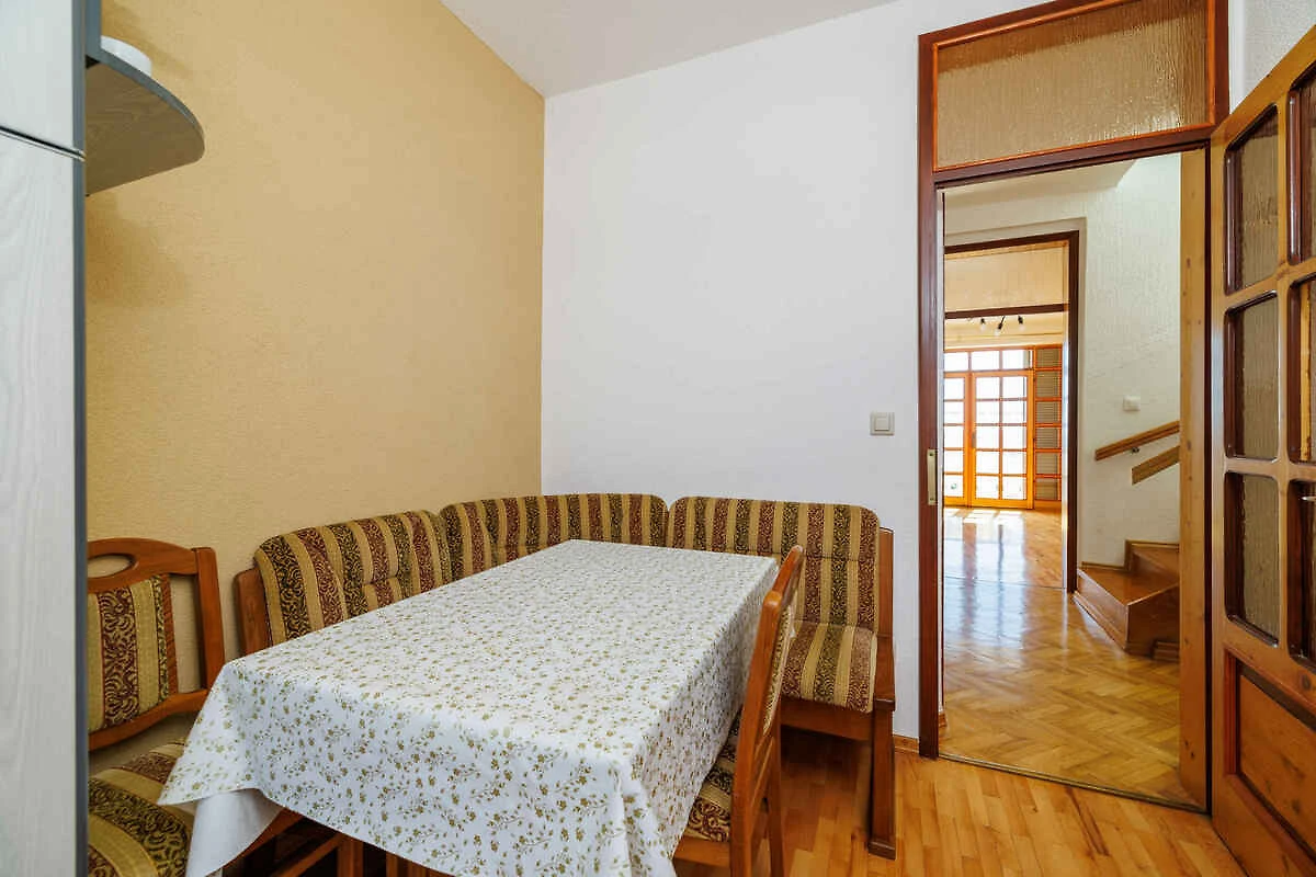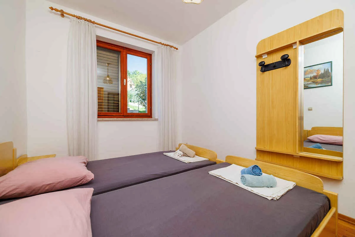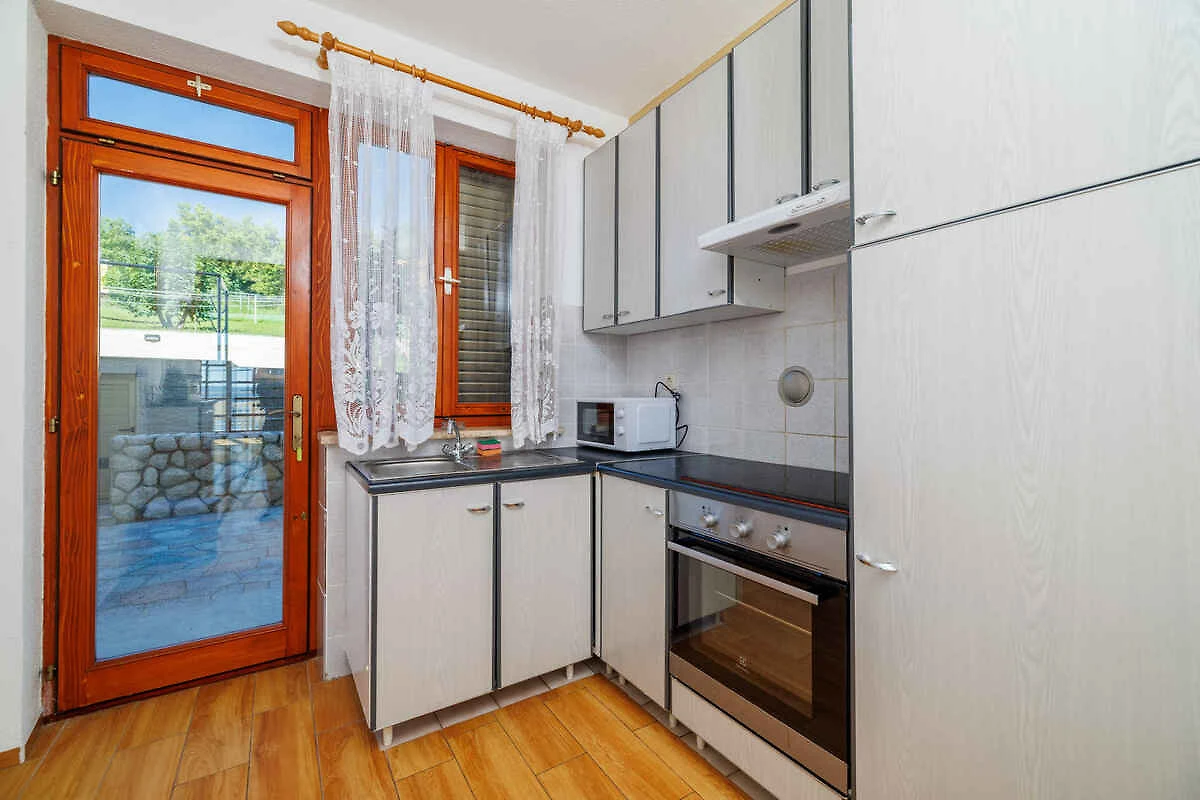 Crikvenica. Die Ferienwohnung befindet sich auf einem 500 qm grossen, geschlossenen Gartengrundstück mit Wiese, Blumen und Bäumen, von einem Zaun und einer Hecke begrenzt. Der Vermieter wohnt ständig in einem separaten Gebäude auf dem Grundstück. Die Zufahrt erfolgt direkt von der Hauptstrasse (asphaltiert). Parkplatz (für 1 Pkw) auf dem Grundstück.
