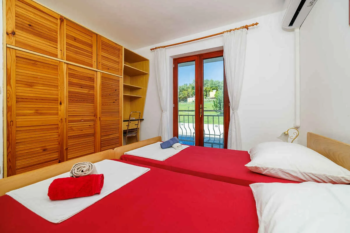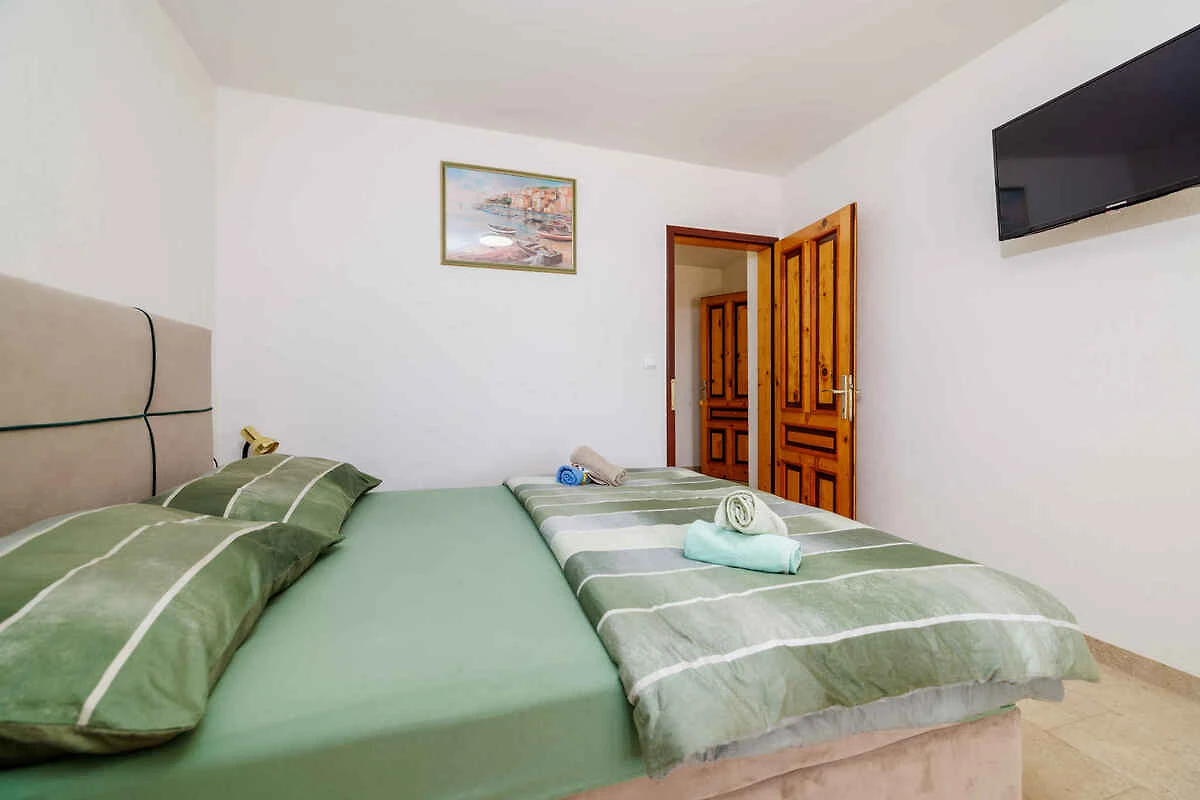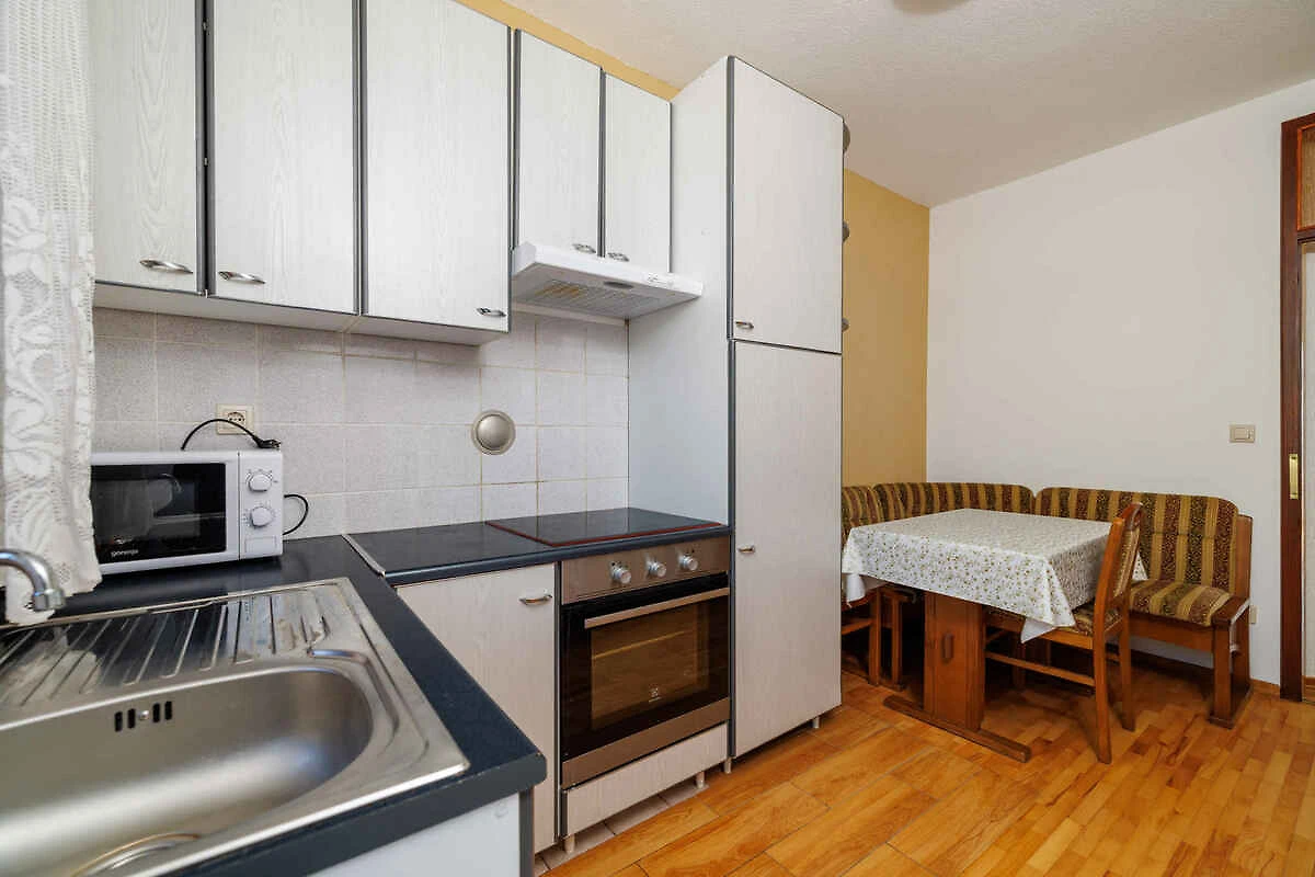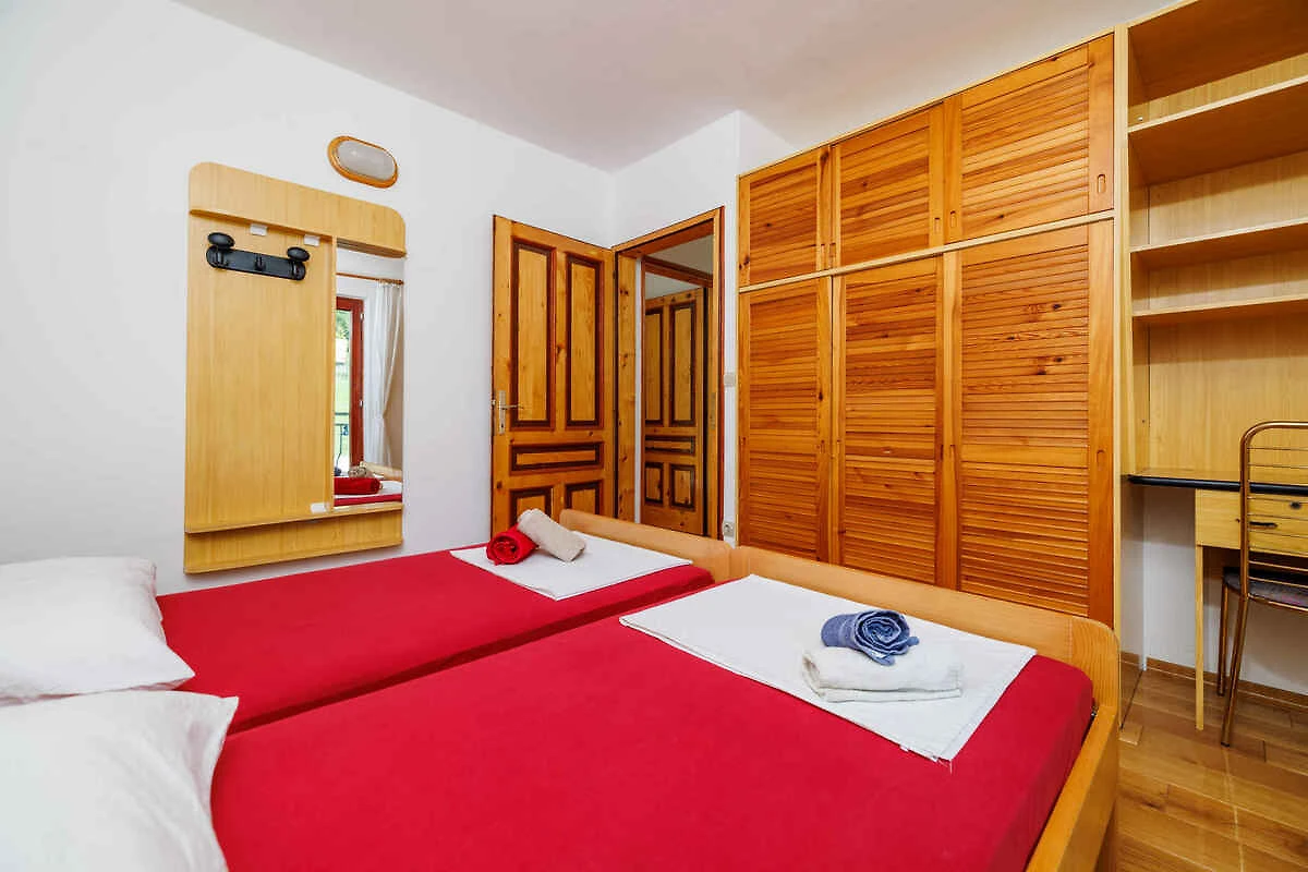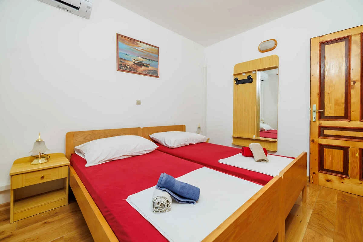 Crikvenica. Die Ferienwohnung befindet sich auf einem 500 qm grossen, geschlossenen Gartengrundstück mit Wiese, Blumen und Bäumen, von einem Zaun und einer Hecke begrenzt. Der Vermieter wohnt ständig in einem separaten Gebäude auf dem Grundstück. Die Zufahrt erfolgt direkt von der Hauptstrasse (asphaltiert). Parkplatz (für 1 Pkw) auf dem Grundstück.