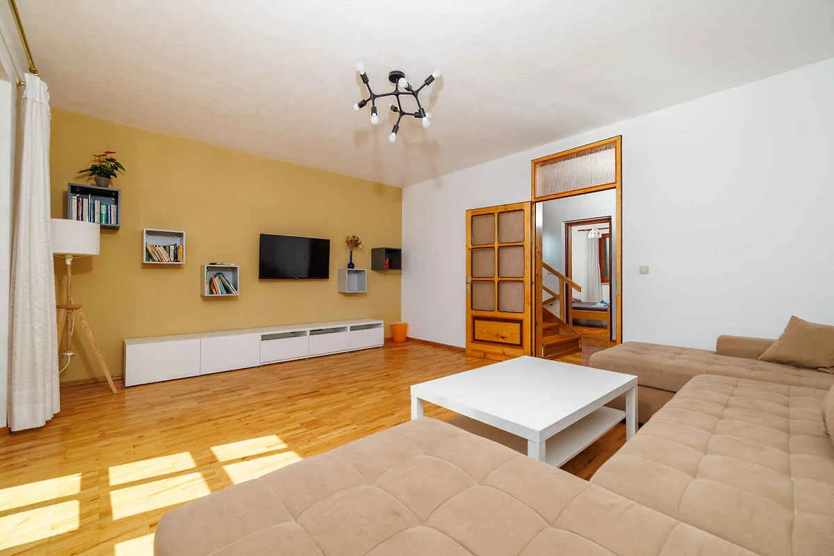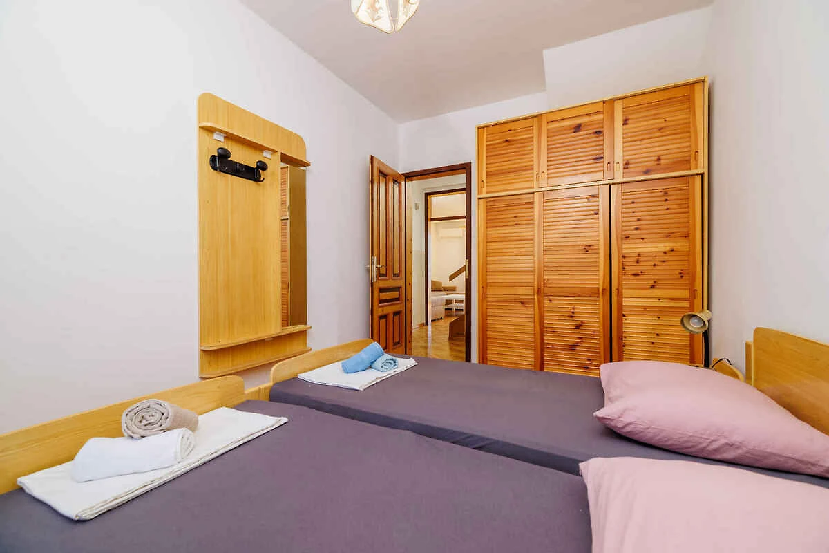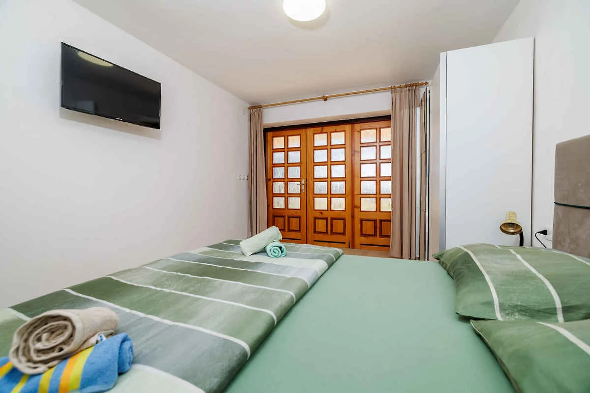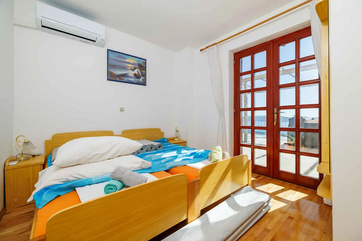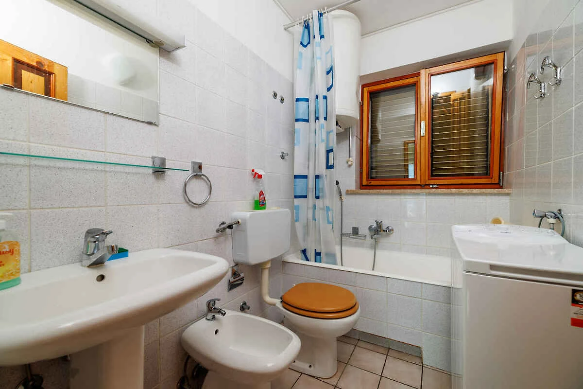 Crikvenica. Die Ferienwohnung befindet sich auf einem 500 qm grossen, geschlossenen Gartengrundstück mit Wiese, Blumen und Bäumen, von einem Zaun und einer Hecke begrenzt. Der Vermieter wohnt ständig in einem separaten Gebäude auf dem Grundstück. Die Zufahrt erfolgt direkt von der Hauptstrasse (asphaltiert). Parkplatz (für 1 Pkw) auf dem Grundstück.