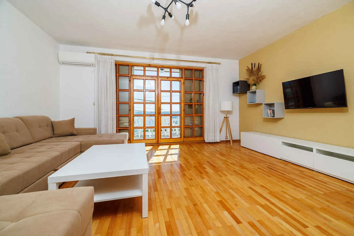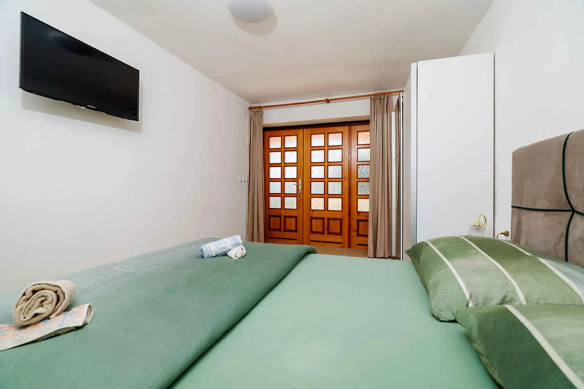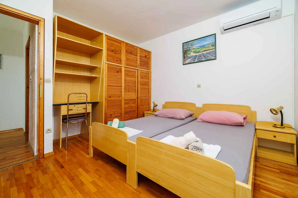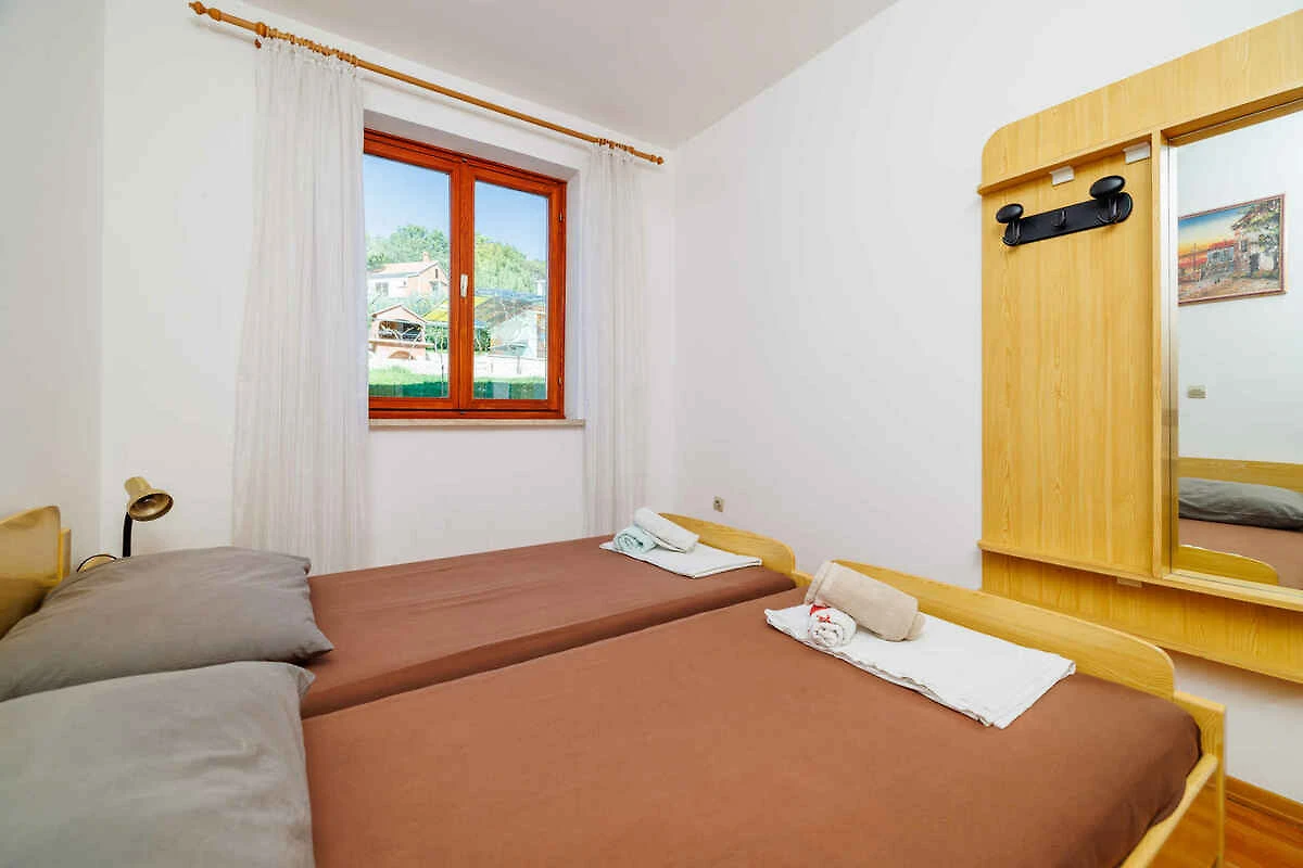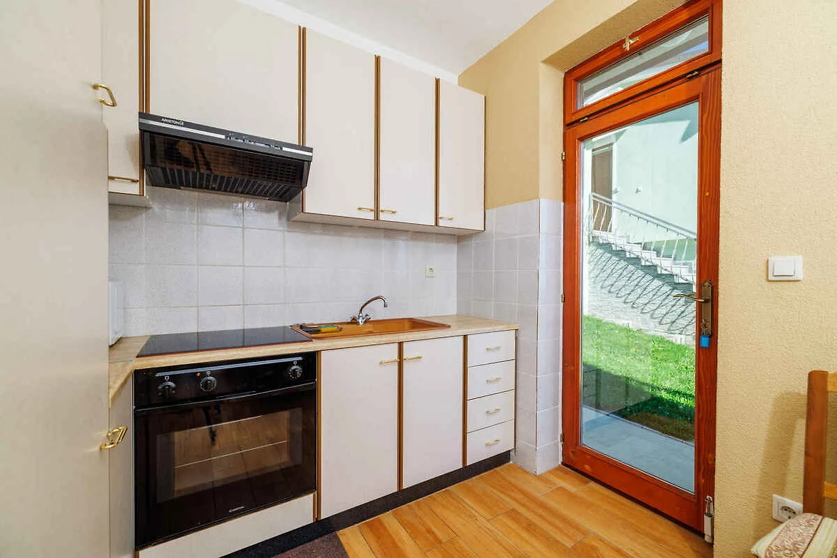 Crikvenica. Die Ferienwohnung befindet sich auf einem 500 qm grossen, geschlossenen Gartengrundstück mit Wiese, Blumen und Bäumen, von einem Zaun und einer Hecke begrenzt. Der Vermieter wohnt ständig in einem separaten Gebäude auf dem Grundstück. Die Zufahrt erfolgt direkt von der Hauptstrasse (asphaltiert). Parkplatz (für 1 Pkw) auf dem Grundstück.