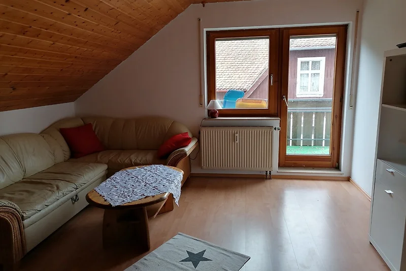 Besonders beliebt bei den Gästen der Ferienwohnung: der schöne Balkon. Ihnen stehen neben einem Kühlschrank auch eine Kaffeemaschine und eine Mikrowelle zur Verfügung.