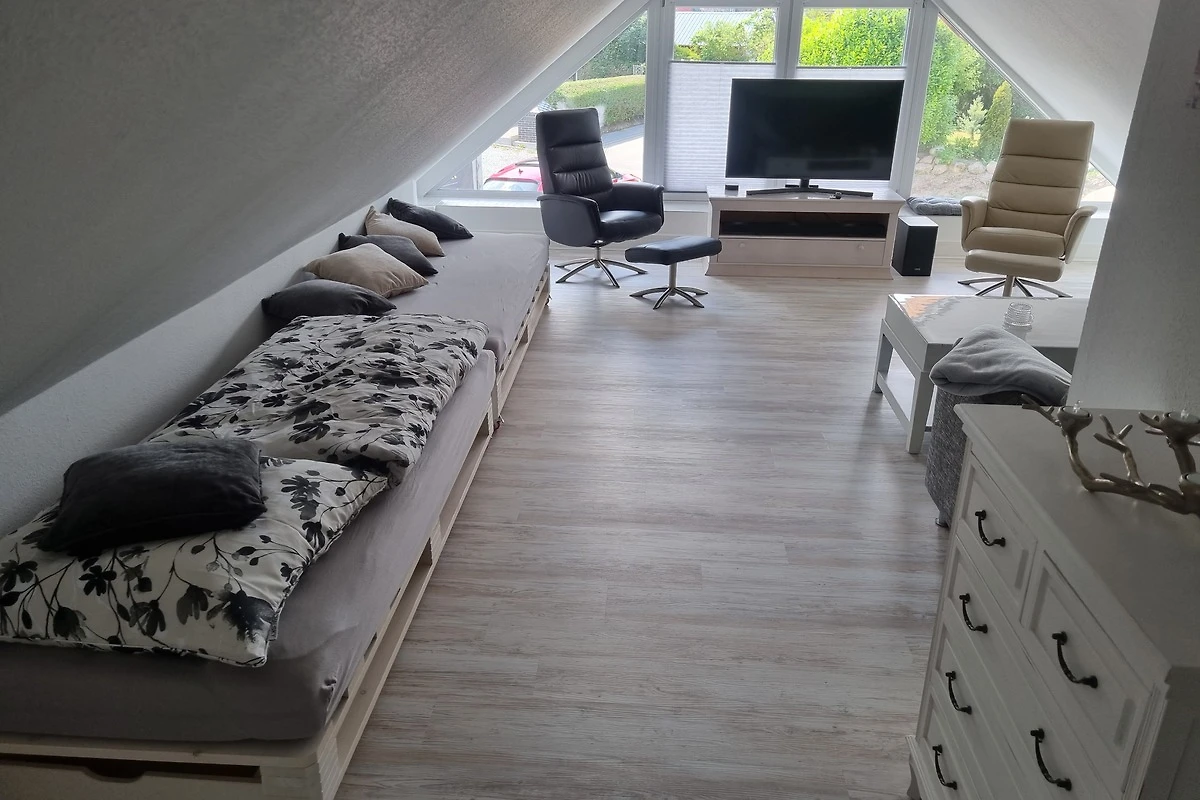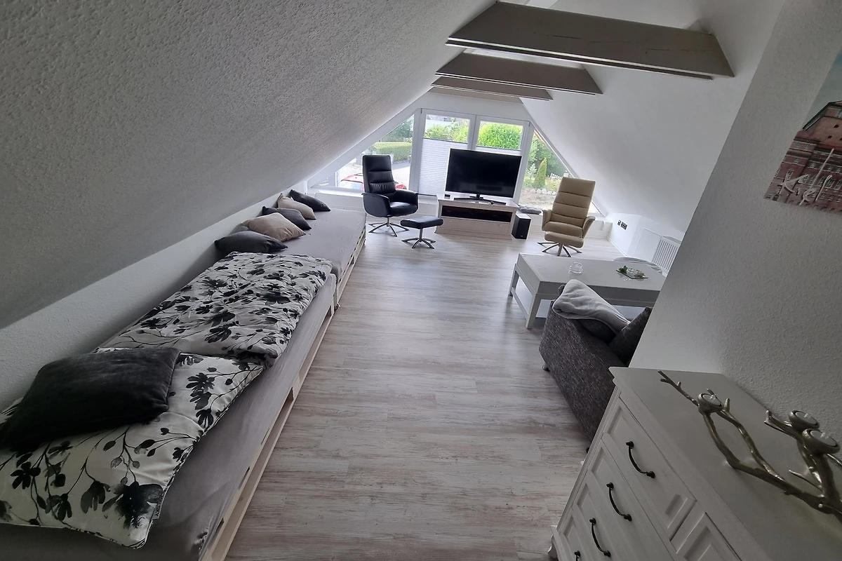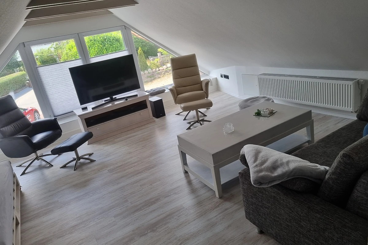 In der nahen Umgebung finden Sie zahlreiche Freizeitmöglichkeiten: ein Bolzplatz, ein Spielplatz und eine Skaterbahn sorgen für Abwechslung und Spaß für Jung und Alt. Das Meer liegt nur etwa 1,5 Kilometer entfernt – dort können Sie in einem Imbiss oder einem Restaurant kulinarische Köstlichkeiten genießen, während Sie die frische Meeresbrise auf sich wirken lassen.